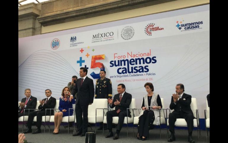 CIUDAD DE MÉXICO (07/NOV/2016).- El Presidente Enrique Peña Nieto llamó a sociedad y gobierno a establecer una agenda para los próximos dos años, que permita afinar y definir la política pública que en materia de seguridad pública debe seguir el Estado mexicano. Al inaugurar el Quinto Foro Nacional "Sumemos causas, por la seguridad: ciudadanos + policías", destacó las acciones desarrolladas por su gobierno en este ámbito, como la entrada en vigor del número telefónico de emergencia 911 a nivel nacional y la profesionalización de las policías, particularmente la Federal. Destacó que en cárceles federales no hay sobrepoblación, aunque sí en las de orden local, y resaltó los operativos especiales en algunas zonas del país para el combate contra la delincuencia. El Mandatario subrayó que esos operativos federales son subsidiarios y enfocados a dar un respaldo temporal a las autoridades estatales y municipales, para que ellas emprendan esfuerzos propios en favor de la seguridad.
