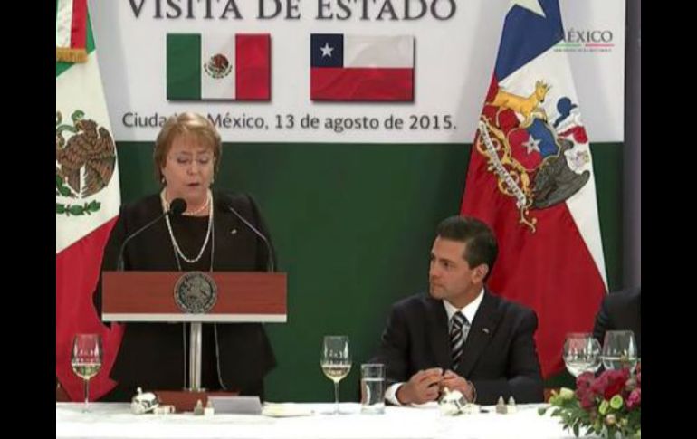 México | El Mandatario destaca el trabajo de su homóloga con reformas para mejorar desarrollo Peña Nieto ofrece comida de honor a Bachelet El Mandatario destaca el trabajo de su homóloga chilena con las reformas para mejorar el desarrollo Por: SUN 13 de agosto de 2015 - 15:36 hs CIUDAD DE MÉXICO (13/AGO/2015).- El Presidente Enrique Peña Nieto ofreció una comida de honor en el marco de la visita a México de la mandataria de Chile, Michelle Bachelet. El Mandatario mexicano destacó el trabajo de Michelle Bachelet y del pueblo chileno con las reformas para mejorar las condiciones de desarrollo. Asimismo, destacó los lazos de amistad con entre los pueblos mexicanos y chileno y rememoró el exilio de ciudadanos de ese país que fueron acogidos por México en los 70. Mientras, la mandataria sudamericana aseguró que para cualquier chilena o chileno, venir a México es como venir a casa. México y Chile somos hermanos, expresó. Destacó el potencial comercial y cultural que existe entre ambas naciones para trabajar en ello. Temas Gobierno de México Enrique Peña Nieto Chile Michelle Bachelet Lee También ¿Dónde ver EN VIVO el partido amistoso México vs Ecuador? Trabajadores del SAT se manifiestan en Jalisco Maiceros toman carreteras y autopistas en Jalisco Joven que disparó a David Cohen afirma que le ofrecieron dinero Recibe las últimas noticias en tu e-mail Todo lo que necesitas saber para comenzar tu día Registrarse implica aceptar los Términos y Condiciones