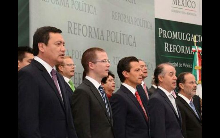 México | El Presidente encabeza ceremonia en el Alcázar del Castillo de Chapultepec Peña Nieto promulga reforma político electoral El Presidente encabeza la ceremonia de promulgación en el Alcázar del Castillo de Chapultepec Por: SUN 31 de enero de 2014 - 13:34 hs CIUDAD DE MÉXICO (31/ENE/2014).- El Presidente Enrique Peña Nieto encabezó la promulgación en el Alcázar del Castillo de Chapultepec de la reforma político- electoral. A este evento no asistió ninguno de los líderes del Partido de la Revolución Democrática (PRD). En cambio, se dieron cita los líderes nacionales de los partidos Revolucionario Institucional (PRI) y Acción Nacional (PAN), César Camacho Quiroz, y Gustavo Madero, así como integrantes de ambas dirigencias nacionales y sus respectivos coordinadores parlamentarios en el Congreso de la Unión. Además, asistieron los magistrados del Tribunal Electoral del Poder Judicial de la Federación y los consejeros del Instituto Federal Electoral (IFE). Temas Gobierno de México Reforma Electoral Enrique Peña Nieto Reforma Política Lee También Clima en Ciudad de México hoy: el pronóstico para el miércoles 15 de octubre de 2025 Checo Pérez podría estar presente en el GP de México Astros de Jalisco mantiene su constancia, aunque el título del la LNBP sigue pendiente Vive Latino 2026: Artistas, precios oficiales y fechas de preventa Recibe las últimas noticias en tu e-mail Todo lo que necesitas saber para comenzar tu día Registrarse implica aceptar los Términos y Condiciones