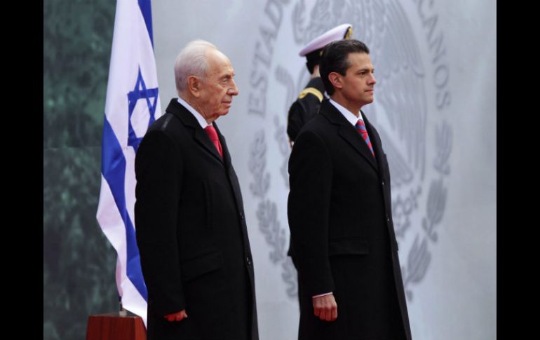 México | Shimon Peres está en México para realizar una visita de Estado Peña Nieto recibe al presidente de Israel En la breve ceremonia, los presidentes presentaron sus respectivas comitivas y pasaron revista a la guardia de honor Por: NTX 27 de noviembre de 2013 - 10:24 hs CIUDAD DE MÉXICO (27/NOV/2013).- El Presidente Enrique Peña Nieto encabezó la ceremonia oficial de bienvenida a su homólogo de Israel, Shimon Peres, quien llegó a México la víspera para realizar una visita de Estado. En la explanada Francisco I. Madero de la residencia oficial de Los Pinos, los mandatarios de México e Israel, acompañados por sus respectivas comitivas, presenciaron el acto protocolario con alfombra roja, que duró unos 20 minutos, en donde se entonaron los himnos de ambos países. En la breve ceremonia, los presidentes presentaron sus respectivas comitivas y pasaron revista a la guardia de honor, para después sostener una reunión bilateral que se estima durará una hora. Al término de la misma, Peña Nieto y Peres tendrán una reunión ampliada con sus respectivas comitivas y después ofrecerán un mensaje conjunto en el salón Adolfo López Mateos. Shimon Peres llegó a la Ciudad de México la tarde del martes acompañado por empresarios y directivos de 80 empresas líderes en materia de seguridad, cibernética, tecnología, comunicación, agua y energía. En el acto estuvieron presentes los secretarios de Relaciones Exteriores, José Antonio Meade, y de Economía, Ildefonso Guajardo, entre otros. Se tiene previsto que el Presidente Peña Nieto y su esposa, Angélica Rivera, ofrezcan al invitado una cena en su honor en Palacio Nacional, donde ambos jefes de Estado dirigirían un mensaje. Por la tarde, Shimon Peres se reunirá con el empresario Carlos Slim y con un grupo de empresarios israelíes. Temas Gobierno de México Enrique Peña Nieto Shimon Peres Israel Lee También Lanzan convocatoria a colectivos de búsqueda para participar en proceso de inhumación y exhumación Detienen a presunto autor intelectual del asesinato de líder limonero en Apatzingán Este será el costo del Gas Bienestar en CDMX en la semana del 20 al 25 de octubre Jalisco y 'Te Protejo México' firman acuerdo para fortalecer la ciberseguridad infantil y de adolescentes Recibe las últimas noticias en tu e-mail Todo lo que necesitas saber para comenzar tu día Registrarse implica aceptar los Términos y Condiciones