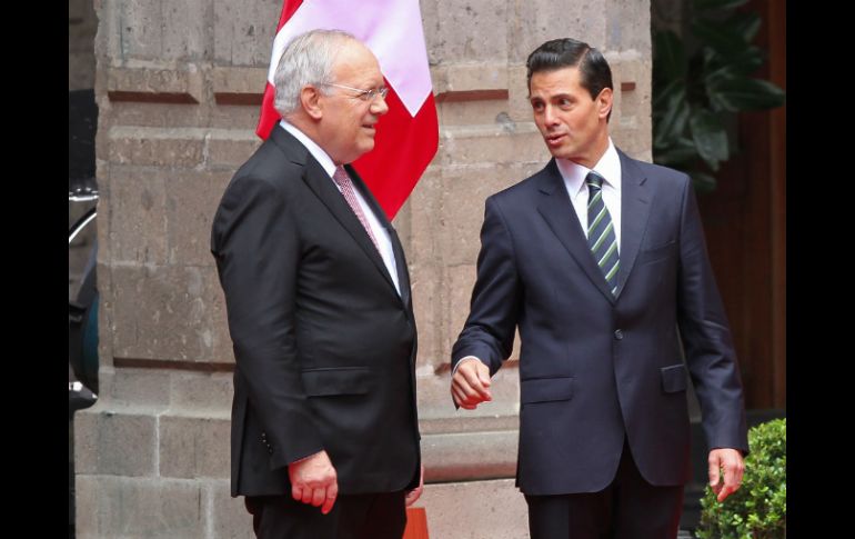 CIUDAD DE MÉXICO (04/NOV/2016).- El Presidente Enrique Peña Nieto, dio la bienvenida en una ceremonia oficial en Palacio Nacional, a su homólogo de la Confederación Suiza, Johann Schneider-Ammann, quien realiza una Visita de Estado a México. Durante el acto realizado en el Patio Central, se entonaron los himnos nacionales de las dos naciones y ambos mandatarios hicieron la presentación de sus respectivas comitivas. Luego de pasar revista a las tropas de honor, los presidentes subieron por la escalera monumental, donde Peña Nieto ofreció una explicación del mural del pintor mexicano Diego Rivera. Los mandatarios sostendrán una reunión privada, para más tarde intercambiar obsequios en el despacho presidencial y tomarse la fotografía oficial. Posteriormente, en el Patio de Honor de Palacio Nacional, ofrecerán un mensaje a medios de comunicación, antes de dirigirse al Salón Tesorería, donde Peña Nieto ofrecerá una comida a Johann Schneider-Amman y a sus acompañantes. Esta Visita de Estado se enmarca dentro de la conmemoración del 70 aniversario del establecimiento de relaciones diplomáticas entre Suiza y México, que iniciaron el 22 de diciembre de 1945. Asimismo, se impulsará el proceso de actualización del Tratado de Libre Comercio de México con los países de la Asociación Europea de Libre Comercio (AELC), que integran Suiza, Noruega, Liechtenstein e Islandia. Desde su entrada en vigor en 2001, el intercambio comercial entre Suiza y México creció a una tasa media anual de 6.7 por ciento, y se han llevado a cabo dos rondas de negociaciones, la primera en Suiza, en mayo de 2016; y en México, en septiembre de este año.