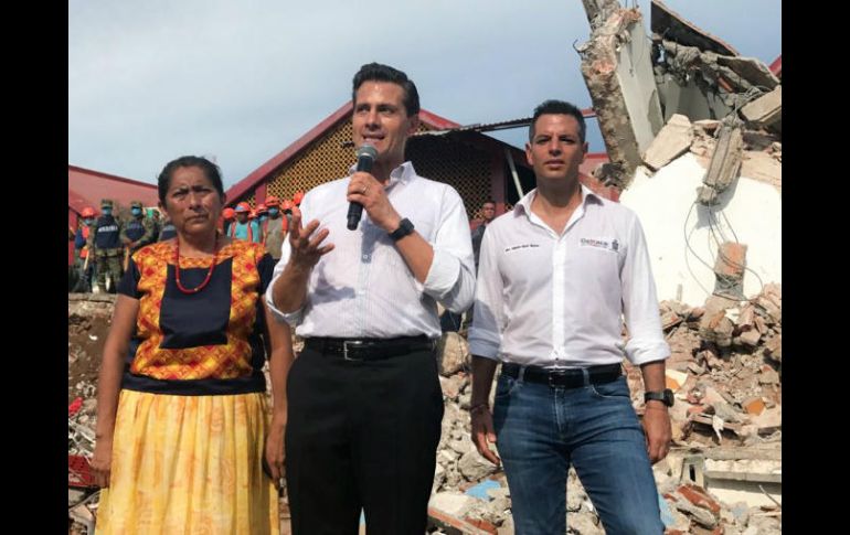 JUCHITÁN, OAXACA.- El presidente Enrique Peña Nieto realizó un recorrido por Juchitán, Oaxaca, el municipio más afectado por el sismo de 8.2 grados Richter, registrado la noche del jueves, y ofreció a habitantes damnificados todo el apoyo institucional.En un inicio el mandatario tenía previsto viajar hacia Chiapas, otra de las entidades que tuvo mayores afectaciones por el movimiento telúrico; no obstante, decidió viajar primero a la comunidad oaxaqueña, donde hubo severas afectaciones estructurales y derrumbes. El avión presidencial TP-01 aterrizó en la base militar de Ixtepec para después trasladarse por tierra hasta Juchitán, donde recorrió las calles afectadas, particularmente las del centro, previo a una reunión de evaluación de daños con autoridades federales, locales y de Protección Civil. Acompañado por los secretarios de Gobernación, Miguel Ángel Osorio Chong; Defensa, Salvador Cienfuegos; Marina, Vidal Soberón, y el gobernador de Oaxaca, Alejandro Murat, escuchó los testimonios de los habitantes que fueron afectados, a quienes les aseguró que contarán con todo el apoyo institucional.Las autoridades de Juchitán confirmaron que suman 31 muertos tras el terremoto. En ese municipio se registró la caída del palacio municipal, casas, un hotel y otros inmuebles.En todo el país, el número de víctimas por el sismo ha ascendido a 58 personas, pues hay 45 muertos en Oaxaca, 10 en Chiapas y tres en Tabasco.Con información de SUN