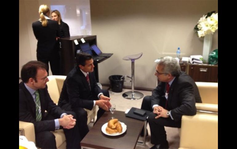 México | El precandidato del PRI ha sostenido encuentros con empresarios y ejecutivos Peña Nieto se reúne con Zedillo en Davos Tras su asistencia al panel El Nuevo Contexto en América Latina, el priista ha sostenido reuniones con funcionarios de las Naciones Unidas Por: SUN 25 de enero de 2012 - 10:36 hs Enrique Peña Nieto, precandidato del PRI a la presidencia y Ernesto Zedillo expresidente de México (d).ESPECIAL / CIUDAD DE MÉXICO (25/ENE/2012).- Enrique Peña Nieto, precandidato del Partido Revolucionario Institucional (PRI) a la Presidencia de la República, se reunió con el ex presidente Ernesto Zedillo en el marco de su participación en el Foro Económico Mundial de Davos. Además, tras su asistencia al panel "El Nuevo Contexto en América Latina", el priista ha sostenido encuentros con empresarios y ejecutivos de empresas globales con intereses en México así como con funcionarios de las Naciones Unidas. De acuerdo con información difundida por Luis Videgaray, coordinador general de la campaña presidencial del PRI, Peña Nieto sostuvo encuentros esta mañana con Yury Fedotov, jefe de la Oficina contra el Crimen y Drogas de la ONU. Además -de acuerdo con datos y fotografías publicados por Videgaray a través de su cuenta en Twitter- el aspirante presidencial platicó con Carlos Ghosn, presidente mundial de Nissan Renault y con Ana Patricia Botín de Santander. Temas Foro Económico Mundial Davos Política Enrique Peña Nieto Ernesto Zedillo Lee También Argentina se burla de la Selección Mexicana con intro del Chavo del 8 (VIDEO) La aparente estabilidad mexicana La embriaguez del poder: cuando el alma se emborracha de sí misma Ni tan buenos ni tan malos Recibe las últimas noticias en tu e-mail Todo lo que necesitas saber para comenzar tu día Registrarse implica aceptar los Términos y Condiciones