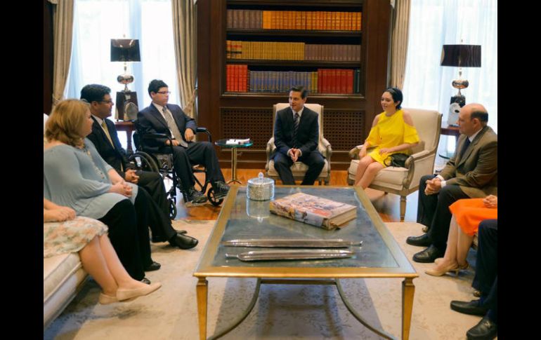 CIUDAD DE MÉXICO (23/AGO/2017).- El Presidente Enrique Peña Nieto se reunió hoy con los jóvenes que resultaron heridos en un tiroteo ocurrido en el Colegio Americano del Noreste, el pasado 18 de enero.El Mandatario recibió a los jóvenes estudiantes de la secundaria de ese plantel privado, Ana Cecilia Díaz Ramos y Luis Fernando Ramírez González, acompañados por sus familias, en la residencia oficial de Los Pinos.El jefe del Ejecutivo federal, quien estuvo acompañado por el secretario de Educación Pública, Aurelio Nuño, y el coordinador general de Comunicación Social de la Presidencia de la República, Eduardo Sánchez, mostró a los jóvenes diversas áreas de la residencia oficial.
