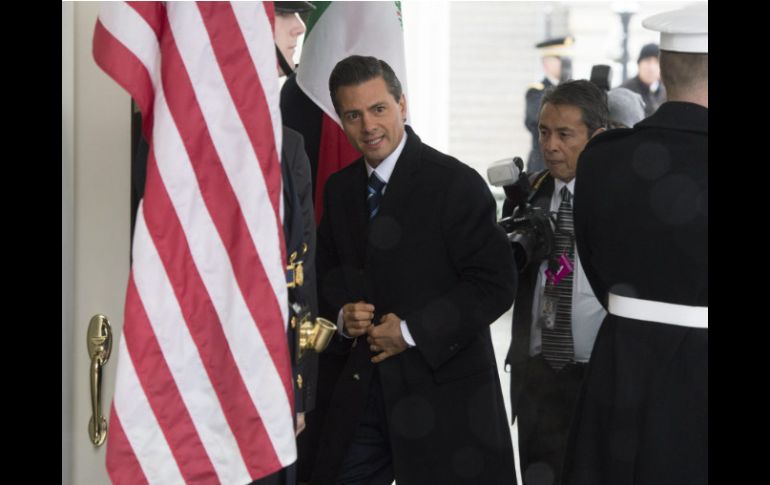 México | Medio centenar de personas se manifesta en contra del Mandatario mexicano Peña arriba a la Casa Blanca para encuentro con Obama Los inconformes gritan consignas en demanda de justicia por los casos Tlatlaya y Ayotzinapa Por: SUN 6 de enero de 2015 - 09:56 hs WASHINGTON, ESTADOS UNIDOS (06/ENE/2015).- El Presidente Enrique Peña Nieto ingresó a la Casa Blanca la mañana de hoy martes, donde, en el marco de la visita oficial que realiza a Estados Unidos, se reunirá con su homólogo estadounidense, Barack Obama. El Mandatario arribó al filo de las 11:00 (hora local) mientras que a las afueras de la residencia oficial medio centenar de personas se manifestaba en contra del Ejecutivo mexicano. Los inconformes gritaron consignas en demanda de justicia por los casos Tlatlaya y Ayotzinapa. El Presidente Peña Nieto fue recibido en lobby del ala oeste de la Casa Blanca, por donde ingresan todos los visitantes distinguidos, por el jefe de protocolo de los Estados Unidos, Peter A. Selfridge. Los presidentes Peña y Obama dialogarán en privado acompañados exclusivamente por el jefe de la oficina de la Presidencia de México, Aurelio Nuño, y por la asesora de seguridad nacional de Estado Unidos, Susan Rice. Posteriormente los mandatarios se sumarán a la reunión de comitivas que se desarrollará paralelamente y en la que por México estarán los secretarios de Gobernación, Relaciones Exteriores y de Hacienda así como el Procurador General y el director del Centro de Investigación y Seguridad Nacional ( Cisen). Temas Gobierno de México Giras presidenciales Enrique Peña Nieto Barack Obama Casa Blanca Recibe las últimas noticias en tu e-mail Todo lo que necesitas saber para comenzar tu día Registrarse implica aceptar los Términos y Condiciones