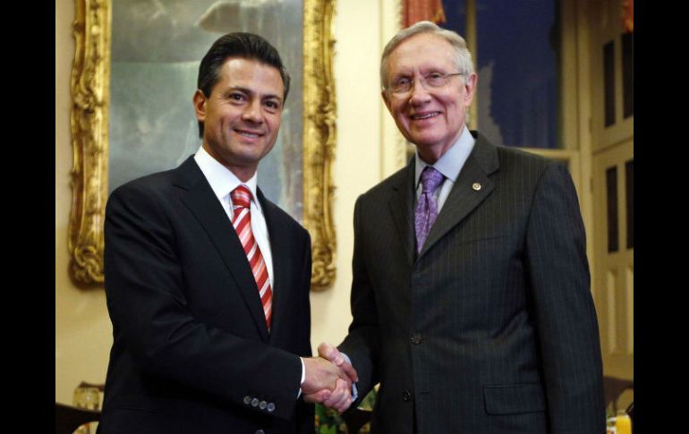 México | El presidente electo se reúne en privado con los senadores Peña sostiene reunión con líderes del senado en EU Se reune en privado con los líderes de la mayoría y de la minoría en el Senado, el demócrata Harry Reid y el republicano, Mitch McConnell Por: NTX 27 de noviembre de 2012 - 18:02 hs WASHINGTON DC, ESTADOS UNIDOS (27/NOV/2012).- El presidente electo de México, Enrique Peña Nieto se reunió en privado con los líderes de la mayoría y de la minoría en el Senado, el demócrata Harry Reid y el republicano, Mitch McConnell, respectivamente. Luego de su encuentro con el mandatario de Estados Unidos, Barack Obama, el político mexiquense también saludó a los senadores que se han distinguido por su activismo antiinmigrante, John McCain, Marco Antonio Rubio y Tom Udall. En tanto su equipo de comunicación social, informó que Peña Nieto adelantaba su salida a Ottawa, Canadá, por lo que se canceló el encuentro con los medios de comunicación que se tenía programado. Por otra parte, en su cuenta de Twitter, el coordinador general para la Transición Gubernamental, Luis Videgaray, calificó la reunión de Peña Nieto con Obama como "muy buena". "Noté optimista a @BarackObama respecto a la reforma migratoria. @EPN ofreció todo su apoyo, en beneficio de los mexicanos que viven en EUA", escribió en la red social. En otro mensaje anotó: "Muy buena reunión entre @EPN y @BarackObama. Duró un poco más de una hora. Abordaron los temas más relevantes de la relación bilateral". Temas Política Estados Unidos Enrique Peña Nieto Harry Reid Lee También ¿Bad Bunny fuera del Super Bowl? Este sería el show alternativo Poza Rica, inundado por desbordamiento del río Cazones Bad Bunny permanece sentado durante "God Bless America" y enciende las redes Lista actualizada de selecciones que ya clasificaron al Mundial 2026 Recibe las últimas noticias en tu e-mail Todo lo que necesitas saber para comenzar tu día Registrarse implica aceptar los Términos y Condiciones