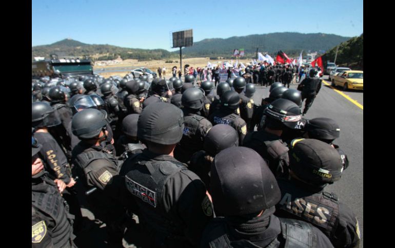 México | Protestan en contra de la Cumbre de Líderes de América del Norte Policías impiden paso a manifestantes en Toluca Elementos de la Secretaria de Seguridad Ciudadana impiden paso a manifestantes en contra de la Cumbre de Líderes de América del Norte Por: NTX 19 de febrero de 2014 - 11:48 hs TOLUCA, ESTADO DE MÉXICO (19/FEB/2014).- Elementos de la Secretaria de Seguridad Ciudadana impiden el paso a manifestantes en contra de la Cumbre de Líderes de América del Norte, registrándose algunos enfrentamientos menores. Integrantes de organizaciones como Sindicato Mexicano de Electricistas ( SME), movimiento en contra de la recategorización del Nevado de Toluca y la unión de ex braceros, anarquistas y militantes del Partido de la Revolución Democrática (PRD) realizan protestas a la altura de la calle de Isidro Fabela y el Mercado Juárez, de esta ciudad. Los uniformados y las vallas de seguridad impidieron el paso de los manifestantes registrándose algunos enfrentamientos, sin que por el momento se reporten personas lesionadas, sólo algunos con golpes menores. Temas Enrique Peña Nieto Barack Obama Estados SME Estado de México Manifestaciones en México Recibe las últimas noticias en tu e-mail Todo lo que necesitas saber para comenzar tu día Registrarse implica aceptar los Términos y Condiciones