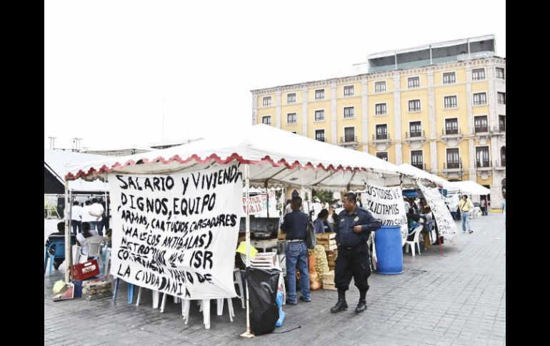 México | Agentes municipales y estatales de Nayarit siguen en paro Policías sacrifican su vida por sueldo ''injusto'' Los habitantes no contarán con la protección de las autoridades durante los comicios Por: EL INFORMADOR 3 de julio de 2011 - 03:43 hs Los agentes de seguridad se “resguardan” bajo una carpa blanca, en la cual hay una estufa en la que preparan sus alimentos. E. PACHECO / TEPIC, NAYARIT (03/JUL/2011).- En el día de las elecciones que definen al próximo Gobierno del Estado, los votantes no cuentan con la protección de la Policía estatal ni de la municipal de Tepic, ya que sus elementos están en paro laboral por la falta de condiciones. Alejandro Guerra, agente de Seguridad Pública de Tepic, narra que desde 2008 han peleado por un aumento de sueldo y que el actual gobernador de Nayarit, Ney González, no ha cumplido. Con copia de recibos de nómina, Alejandro demuestra que un barrendero gana siete mil 172 pesos, mientras que un policía percibe cinco mil 362 pesos al mes. “No tenemos seguro de vida. Las esposas de los compañeros que han caído a tiros de los delincuentes, andan pidiendo como limosneras que se les pague un dinerito”. “Hacemos un llamado al Presidente Felipe Calderón para que se realice una investigación a todas las corporaciones del Estado debido a que no están actuando como es su deber”, expresan en un comunicado los agentes de seguridad municipales inconformes. Josefina Topete, esposa de José Antonio, se ha unido al plantón. Todas las tardes después de trabajar lleva a su hija de dos años a la plaza que está afuera de la presidencia municipal para que vea a su papá, pues hace 15 días que él se ausentó de casa para solidarizarse con sus compañeros policías. Tener miedo de si regresará sano su esposo cada vez que sale a trabajar a las calles, es una sensación que se ha convertido en algo recurrente para Josefina. Está consciente que él trabaja sin el armamento necesario. “Parece que les dan unas resorteras en comparación de las armas que traen los narcotraficantes”. Los ciudadanos también dan muestras de apoyo a los agentes y han cooperado con alimentos como papas, tortillas o frijoles para que preparen sus comidas en una estufa que montaron debajo de una carpa blanca. Los elementos de las corporaciones municipales y estales que permanecen en plantón, aseguran que no pueden realizar su trabajo porque no cuentan con el equipo necesario para hacer frente a la delincuencia. “Imagínate si nada más nos dan una pistola y un cartucho con 15 balas. No nos vamos a enfrentar así con miembros del narcotráfico que tren metralletas”, relata Jesús Sánchez, integrante de la policía estatal preventiva. Los policías están inconformes porque en su recibo de nómina su cargo aparece como “policía empresarial”. Explican que los agentes clasificados bajo este concepto prestan el servicio de seguridad privada, por el cual el Gobierno cobra alrededor de 10 mil pesos, mientras ellos siguen ganando dos mil 500 pesos quincenales. Temas Estados Nayarit Elecciones 2011 Lee También China amenaza con "pelear hasta el final" si EU mantiene los nuevos aranceles Estos son los estados en alerta por posible propagación de dengue Despliegan operativo tras bloqueos en Chiapas Así se prevé que avance el desarrollo de "Sonia" en México Recibe las últimas noticias en tu e-mail Todo lo que necesitas saber para comenzar tu día Registrarse implica aceptar los Términos y Condiciones