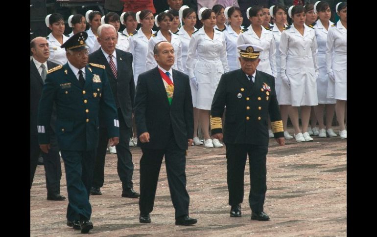 México | Se recuerda a los cadetes militares que defendieron el Castillo de Chapultepec en 1847 Presidente Calderón rinde homenaje a los Niños Héroes El Mandatario pasó la tradicional lista de honor, sin pronunciar ningún discurso Por: NTX 13 de septiembre de 2012 - 09:54 hs CIUDAD DE MÉXICO (13/SEP/2012).- El Pesidente Felipe Calderón Hinojosa encabezó esta mañana la ceremonia conmemorativa del CLXV Aniversario de la Gesta Heroica de los Niños Héroes de Chapultepec. El Ejecutivo federal rindió homenaje a los cadetes del Colegio Militar que defendieron el Castillo de Chapultepec en 1847, ceremonia con la que comenzaron las celebraciones históricas, como el Grito de Independencia que se celebrará el sábado en Palacio Nacional. Acompañado por integrantes del gabinete legal y ampliado, así como por los presidentes de la Suprema Corte de Justicia de la Nación, Juan Silva Meza, y de las mesas directivas de la Cámara de Diputados, Jesús Murillo Karam, y del Senado, Ernesto Cordero Arroyo, el Mandatario pasó la tradicional lista de honor, sin pronunciar discurso. En el Altar a la Patria y acompañado por los secretarios de la Defensa Nacional, Guillermo Galván Galván, y de la Marina, Mariano Francisco Saynez Mendoza, también depositó una ofrenda floral y montó una guardia de honor en el monumento a los Niños Héroes. Asimismo escuchó el discurso de la cadete Edith Fuentes Osorio, quien llamó a preservar la libertad pues "gracias a ella vivimos en democracia", y a extirpar los "cánceres" que representan la corrupción y la impunidad "que nos laceran". El Presidente de la República asistirá a las 13:00 horas a la Ceremonia Magna: Pensamientos de la Patria, que se realizará en las instalaciones del Heroico Colegio Militar. Temas Gobierno de México Felipe Calderón Niños Héroes Lee También Estos son los centros de acopio en CDMX para apoyar a damnificados por lluvias Avalan nueva Ley Orgánica de la Armada de México México vs Ecuador: ¿Quién ganará el partido según la IA? Cambian la fecha del Buen Fin en su aniversario, para coincidir con megapuente Recibe las últimas noticias en tu e-mail Todo lo que necesitas saber para comenzar tu día Registrarse implica aceptar los Términos y Condiciones