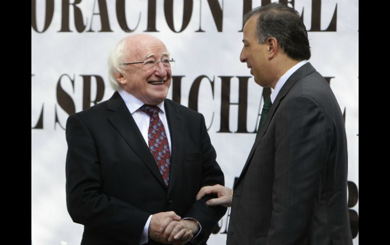 México | Destaca la importancia de fortalecer relaciones en lo político, económico y cultural Presidente de Irlanda llega a México para visita oficial Destaca la importancia de fortalecer la convivencia bilateral en lo político, económico y cultural Por: NTX 20 de octubre de 2013 - 14:37 hs Michael Higgins (i) es recibido por el secretario José Antonio Meade (d). EFE / CIUDAD DE MÉXICO (20/OCT/2013).- El secretario de Relaciones Exteriores, José Antonio Meade, recibió a nombre de México al presidente de Irlanda, Michael Higgins, quien inició este domingo una visita oficial a nuestro país. En un acto celebrado en la Plaza de San Jacinto en San Ángel, el canciller depositó con el mandatario irlandés una ofrenda en el monumento al Batallón de San Patricio, en memoria de los irlandeses que lucharon al lado de México durante la invasión de Estados Unidos en 1847. Durante el acto, donde fue recibido oficialmente por el gobierno mexicano, informó la Secretaría de Relaciones Exteriores ( SRE) en un comunicado, el canciller Meade y el presidente Higgins destacaron la importancia de fortalecer la convivencia bilateral en lo político, económico y cultural. La agenda del mandatario Higgins incluye un encuentro con el Presidente Enrique Peña Nieto el lunes y una conferencia magistral en la cancillería sobre la relación bilateral el miércoles, así como una intensa agenda en otros rubros. Acompañan al presidente irlandés el ministro de Comercio y Desarrollo de ese país, Joe Costelo, una importante delegación de empresarios, además de connotadas personalidades del mundo académico. Temas SRE Política Irlanda José Antonio Meade Lee También Chivas Femenil, una grande que se rezaga entre las campeonas Anuncian 129 iniciativas de ley en el Congreso del Estado de México Cartucho “El Rey” Trump Recibe las últimas noticias en tu e-mail Todo lo que necesitas saber para comenzar tu día Registrarse implica aceptar los Términos y Condiciones