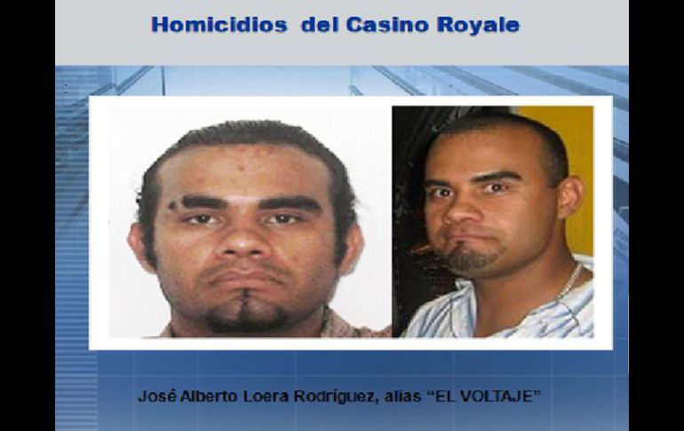 México | Autoridades revelaron fotografías de cuatro sospechosos, entre ellos la de 'El Voltaje' Presunto atacante de casino, ex luchador Señalan que José Alberto Loera Rodríguez luchó en varias arenas de México a nivel profesional Por: SUN 14 de septiembre de 2011 - 18:11 hs Imagen presentada hoy por la PGR y autoridades de Nuevo León de 'El Voltaje'. NTX / - Revelan nuevas fotos de autores del incendio en casino RoyaleCIUDAD DE MÉXICO (14/SEP/2011).- La Procuraduría General de Justicia de Nuevo León reveló que uno de los presuntos atacantes que participaron en el atentado contra el casino Royale era un luchador profesional conocido como "Voltaje", originario de San Nicolás de los Garza. También apuntó que José Alberto Loera Rodríguez, ya había sido detenido con presuntos narcomenudistas en esa ciudad. El diario “El Porvenir” publicó hoy miércoles que luchó en varias arenas de México a nivel profesional. La PGR y autoridades de Nuevo León dieron a conocer hoy las fotografías de cuatro sujetos considerados como los mandos que perpetraron el crimen colectivo del casino Royale en el que murieron 52 personas el 25 de agosto pasado. Además de Loera Rodríguez, alias "El Voltaje", los cabecillas de la célula criminal fueron identificados como Francisco Medina Mejía, "El Quemado"; Baltazar Saucedo Estrada, "El Mataperros", y Jorge Carlos Alberto Alejandro Reyes, "El Toro", "Toruño" o "Tolo". Temas Estados Monterrey Nuevo León Casinos Lee También ¿Bad Bunny fuera del Super Bowl? Este sería el show alternativo Poza Rica, inundado por desbordamiento del río Cazones Bad Bunny permanece sentado durante "God Bless America" y enciende las redes Lista actualizada de selecciones que ya clasificaron al Mundial 2026 Recibe las últimas noticias en tu e-mail Todo lo que necesitas saber para comenzar tu día Registrarse implica aceptar los Términos y Condiciones