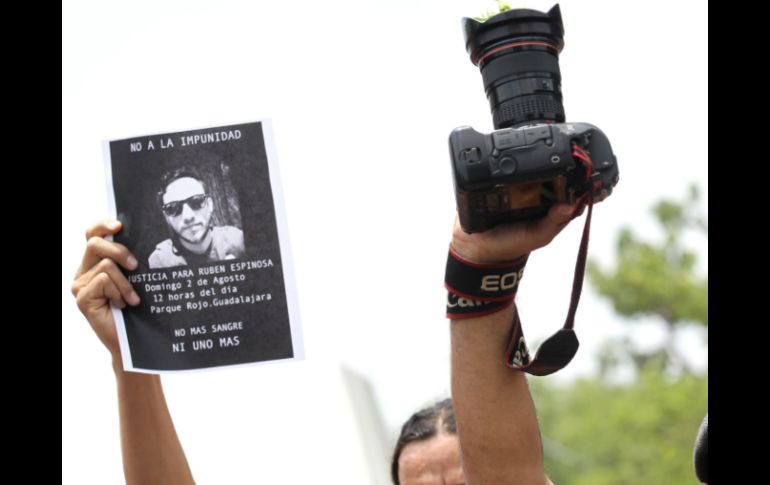 México | Reporteros exigen justicia por el homicidio de Rubén Espinosa Becerril Protestan en Acapulco y Chilpancingo por muerte de fotoreportero Reporteros de medios nacionales, estatales y regionales exigen justicia por el homicidio de Rubén Espinosa Becerril Por: SUN 2 de agosto de 2015 - 14:58 hs ACAPULCO, GUERRERO (02/AGO/2015).- Reporteros y fotorreporteros del puerto de Acapulco y de Chilpancingo, protestaron para exigir justicia por el asesinato de Rubén Espinosa Becerril, fotoperiodista asesinado en la ciudad de México. En Chilpancingo, reporteros de medios nacionales, estatales y regionales, protestaron en la caseta de Palo Blanco, de la Autopista del Sol, en donde repartieron volantes y portaron cartulinas donde se leyó: "Justicia para Rubén", "Todos somos Rubén". Caricaturistas recordaron al colaborador de la agencia estatal "AVC" en Veracruz y de "Cuartoscuro", así como de la revista "Proceso". En Acapulco, reporteros, camarógrafos de diferentes organizaciones sindicales como la sección 25 del Sindicato Nacional de Redactores de la Prensa (SNRP) exigieron justicia por el asesinato de Rubén. En la capital, el dirigente de la sección 17 del SNRP, Eric Chavelaz, exigió al gobierno federal dar con el paradero de los responsables del homicidio. Asimismo, los reporteros independientes también exigieron alto a la represión del gremio. Temas Estados Homicidio Periodistas asesinados Manifestaciones en México Agresiones a periodistas Recibe las últimas noticias en tu e-mail Todo lo que necesitas saber para comenzar tu día Registrarse implica aceptar los Términos y Condiciones
