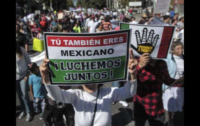 CIUDAD DE MÉXICO (22/ENE/2017).- Padres de los 43 estudiantes desaparecidos de Ayotzinapa, profesores de la Ceteg, e integrantes de diferentes organizaciones marcharon en contra del gasolinazo.Este domingo alrededor de las 11 de la mañana el contingente de unas 500 personas salieron del norte de la ciudad hacia el otro extremo.La manifestación la encabezaron los padres de los estudiantes desaparecidos junto con normalista de Ayotzinapa. Detrás de ellos iban profesores de la Ceteg, Cecyteg e integrantes de la Asamblea Popular de los Pueblos de Guerrero (APPG).El contingente hizo tres paradas. La primera en el zócalo de la ciudad donde demandaron que se revierta el aumento al precio de la gasolina que comenzó con este año. También demandaron la presentación con vida p los 43 estudiantes desaparecidos desde el pasado 26 de septiembre de 2014 en Iguala.La segunda parada fue en Congreso del Estado. Ahí pidieron a los legisladores que se derogue la reforma energética, porque consideraron está afectando a la economía de los pobladores.Después el contingente tomó el carril de la Autopista del Sol que va de norte a sur.Al llegar al punto conocido como el Parador del Márquez, bloquearon la circulación en los dos carriles y tomaron las dos gasolineras que están a los extremos de la vía.A cuatro días de que se cumplan 28 meses de la desaparición de 43 normalistas, Cristina Bautista, mamá de un estudiante responsabilizó de la desaparición de los 43 normalistas al gobierno federal.Descartó que sus hijos pertenecieran al crimen organizado como lo señaló en un principio el ex procurador General de la República, Jesús Murillo Karam. Hasta el momento la marcha se realiza de forma pacífica. Durante el trayecto de la protesta no se contó con presencia policiaca y en las gasolineras no hay trabajadores.