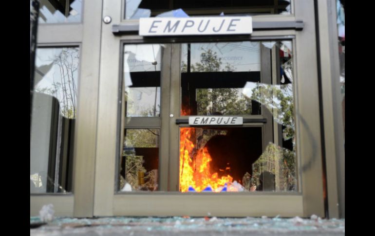 México | Los supuestos responsables son integrantes del grupo MARS Provocan incendio en sede del PRI en municipio de Sonora Los supuestos reponsables son integrantes del grupo ''Movimiento Anarquista Revolucionario Sanluisino (MARS)'' Por: NTX 2 de diciembre de 2012 - 12:34 hs Fachada de un banco destruida, después de un choque entre manifestantes y policías en la Ciudad de México. EFE / HERMOSILLO, SONORA (02/DIC/2012).- La Policía Estatal de Investigaciones (PEI) del estado de Sonora informó hoy que integrantes de un supuesto grupo "Movimiento Anarquista Revolucionario Sanluisino (MARS)" prendió fuego a la sede del PRI en el municipio de San Luis Río Colorado, "en protesta por el regreso de ese partido al poder en México". La PEI informó el siniestro inició a las 03:00 horas de hoy, en la sede del Partido Revolucionario Institucional (PRI) ubicada en avenida Kino y calle Cuarta y que registró daños totales en la planta baja. Precisó que hay dos jóvenes detenidos, quienes al parecer participaron en el ataque durante el cual los participantes lanzaron dos bombas "molotov" de fabricación casera contra el edificio, por lo que están siendo interrogados por la autoridad ministerial. El grupo tiene una página en redes sociales y colocó imágenes de su acción contra la sede priísta. Temas Incendios PRI Estados Sonora Recibe las últimas noticias en tu e-mail Todo lo que necesitas saber para comenzar tu día Registrarse implica aceptar los Términos y Condiciones