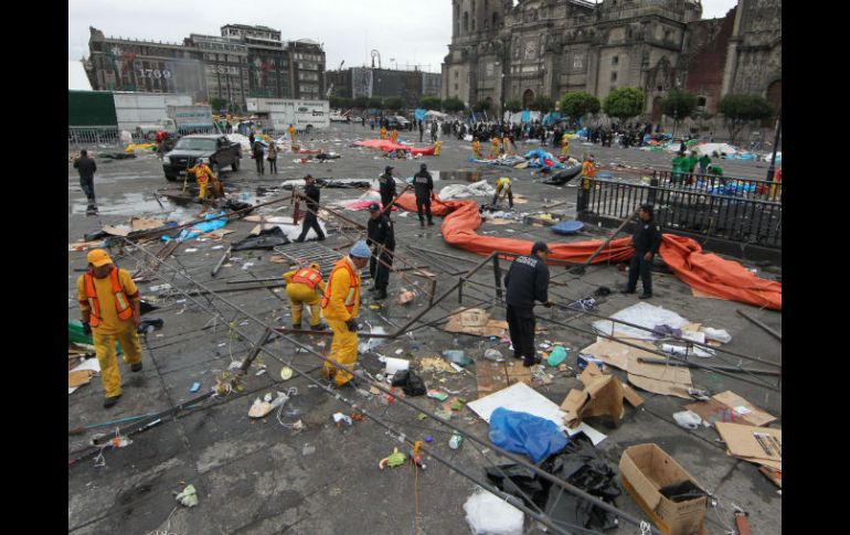 México | Trabajadores realizan labores de limpieza en la plancha Recolectan 81 toneladas de basura en el Zócalo del DF Trabajadores realizan labores de limpieza en la plancha Por: SUN 13 de septiembre de 2013 - 21:42 hs Fueron 400 trabajadores de la Dirección General de Servicios Urbanos (DGSU) quienes iniciaron las labores a partir de las 18:00 horas. NTX / CIUDAD DE MÉXICO (13/SEP/2013).- Un total de 81 toneladas de basura fueron las que se recolectaron en la plancha del zócalo capitalino, tras el retiro del plantón de los maestros de la Coordinadora Nacional de Trabajadores de la Educación (CNTE) con la intervención de la policía federal. De acuerdo con la Secretaría de Obras del DF para los trabajos de limpieza se lavó el piso y mobiliario urbano con desengrasante y líquido desinfectante. Fueron 400 trabajadores de la Dirección General de Servicios Urbanos (DGSU) quienes iniciaron las labores a partir de las 18:00 horas. Se emplearon 15 barredoras mecánicas, dos pipas de agua con capacidad de 45 mil litros cada una, dos plataformas de carga y 48 vehículos para trasladar la basura. Tras el desalojo de los maestros durante un operativo de la Policía Federal (PF) se utilizaron dos equipos de corte para quitar los lazos que sujetaban las carpas de los maestros que estuvieron en plantón desde agosto pasado. Temas Estados Ciudad de México CNTE Lee También Esta es la verdadera identidad del "Juan Gabriel" captado en París t.A.T.u anuncia concierto en México: precio de boletos y cuándo salen a la venta ¿Será obligatorio presentar la CURP biométrica para trámites escolares? Día de Muertos 2025: ¿Por qué será más caro el Pan de Muerto este año? Recibe las últimas noticias en tu e-mail Todo lo que necesitas saber para comenzar tu día Registrarse implica aceptar los Términos y Condiciones