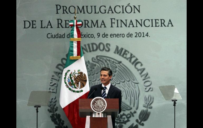 México | El Presidente promulga la reforma financiera en la residencia oficial de Los Pinos Reforma financiera detonará crédito y crecimiento: Peña Nieto Con la reforma financiera se detonará la banca de desarrollo, dice el Mandatario, que a su vez apoyará al campo hasta con un millón 150 mil MDP Por: SUN 9 de enero de 2014 - 11:20 hs CIUDAD DE MÉXICO (09/ENE/2014).- El Presidente Enrique Peña Nieto promulgó la reforma financiera en la residencia oficial de Los Pinos, donde señaló que el objetivo en 2014 es llegar a 1 billón 150 mil millones de pesos en financiamiento directo para detonar obras. Dijo que con la reforma financiera se logrará el aumento del 15% en el crédito que promueve la competencia. Durante la promulgación del documento, el Mandatario señaló que la meta es alcanzar el millón de millones en créditos. Con la reforma financiera se detonará la banca de desarrollo, dijo Peña Nieto, que a su vez apoyará al campo hasta con un millón 150 mil MDP en financiamiento directo para el campo. El Presiente instruyó a la Secretaría de Hacienda a implementar los elementos necesarios para la reforma. También, reconoció el trabajo de los diputados y los senadores que permitieron la promulgación de dicha ley, lo cual refleja "la madurez política" que hay. Temas Gobierno de México Enrique Peña Nieto Campo mexicano Reforma Financiera Lee También Esta es la verdadera identidad del "Juan Gabriel" captado en París t.A.T.u anuncia concierto en México: precio de boletos y cuándo salen a la venta ¿Será obligatorio presentar la CURP biométrica para trámites escolares? Día de Muertos 2025: ¿Por qué será más caro el Pan de Muerto este año? Recibe las últimas noticias en tu e-mail Todo lo que necesitas saber para comenzar tu día Registrarse implica aceptar los Términos y Condiciones