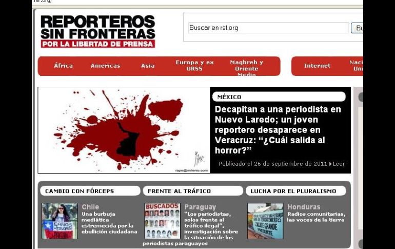 México | Manifiestan inconformidad tras la decapitación de una reportera Reporteros Sin Fronteras expresa pesimismo sobre situación en México Manifiestan inconformidad tras la decapitación de una reportera y la desaparición de un redactor Por: EFE 26 de septiembre de 2011 - 11:36 hs 'Crímenes cada vez más abominables' declara RSF sobre la situación em México. ESPECIAL / PARÍS, FRANCIA (26/SEP/2011).- La organización Reporteros Sin Fronteras (RSF) expresó hoy su pesimismo sobre la situación de la prensa en México, tras la decapitación de una reportera y la desaparición de un redactor en los últimos días. "La cifra de 80 periodistas asesinados en un decenio fue superada en este año 2011, con crímenes cada vez más abominables. No se vislumbra ninguna salida al terror mientras que el país se hunde en una guerra total, en la que tan sólo escribir las palabras 'tráfico' o 'narcos' puede costar la vida", indicó RSF en un comunicado. La reacción de la organización defensora de la libertad de prensa se produjo después de que el cuerpo de María Elizabeth Macías, jefa de redacción del diario "Primera Hora" de Nuevo Laredo fuera encontrado decapitado el pasado sábado. Además, el reportero del diario "El Mañanero de Acayucan", al sur del estado de Veracruz, y colaborador de otros medios Manuel Gabriel Fonseca Hernández no ha dado señales de vida desde el pasado lunes, indicó RSF. "¿Qué quedará de la libertad de información mientras duren la barbarie y la impunidad? Esta fractura del país no se resolverá con las elecciones esperadas", aseguró la organización. Para RSF, "la comunidad internacional debe exigir a las autoridades mexicanas que rindan cuentas regularmente del estado de la lucha contra la impunidad" "En lo que respecta al gobierno federal de Estados Unidos, éste debe imponer un control drástico en el tráfico de armas, sin el cual la tragedia mexicana continuará", agregó. Temas Nacional Estados Libertad de Expresión Periodistas asesinados Lee También Vivienda para el Bienestar: ¿Cuándo inicia la tercera etapa de registro? SMN: Estados que serán más afectados por Raymond y frente frío 6 esta semana Así se prevé que avance el desarrollo de "Sonia" en México Visa laser: ¿Qué vigencia tiene y cuáles son sus limitaciones? Recibe las últimas noticias en tu e-mail Todo lo que necesitas saber para comenzar tu día Registrarse implica aceptar los Términos y Condiciones
