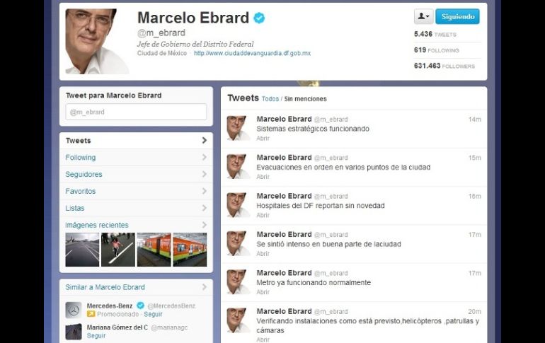 México | El Sismológico Nacional registra el epicentro en el sureste de Río Grande, Oaxaca Sacude sismo de 6.35 grados el Distrito Federal El jefe de Gobierno del Distrito Federal, Marcelo Ebrard, informa que comenzaron operación helicópteros, patrullas y cámaras para verificar la situación en la ciudad Por: NTX 7 de noviembre de 2012 - 10:03 hs Marcelo Ebrard informa los opertativos del gobierno, tras el sismo de esta mañana, a través de su cuenta en Twitter. ESPECIAL / CIUDAD DE MÉXICO (07/NOV/2012).- Un sismo con una magnitud inicial de 6.35 en la escala de Richter se registró esta mañana a las 10:35 horas, con un epicentro en el sureste de Río Grande, Oaxaca, de acuerdo con el Sismológico Nacional en su cuenta de Twitter. El jefe de Gobierno del Distrito Federal, Marcelo Ebrard, informó que comenzaron operación helicópteros, patrullas y cámaras para verificar la situación en la ciudad aunque aparentemente no se reportan daños. También comentó que se han realizado evacuaciones ordenadas en varias partes de la ciudad. Temas Sismos nacional Temblor Estados Ciudad de México Marcelo Ebrard Lee También Detienen a presunto autor intelectual del asesinato de líder limonero en Apatzingán Este será el costo del Gas Bienestar en CDMX en la semana del 20 al 25 de octubre Cines de CDMX donde se estrenará Frankenstein de Guillermo del Toro este 23 de octubre Japón enviará ayuda a México para afectados por las lluvias Recibe las últimas noticias en tu e-mail Todo lo que necesitas saber para comenzar tu día Registrarse implica aceptar los Términos y Condiciones