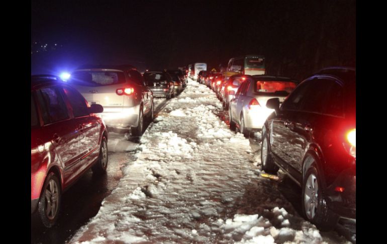 México | La capa de hielo que cubrió la vialidad ha ido derritiéndose Se agiliza avance vehicular en la México-Toluca La capa de hielo que cubrió la vialidad ha ido derritiéndose Por: SUN 17 de abril de 2014 - 12:36 hs CIUDAD DE MÉXICO (17/ABR/2014).- El avance en la autopista México-Toluca se agilizó a partir de la zona de Santa Fe, luego de que durante las primeras horas del día la vialidad permaneciera cerrada por las maniobras para retirar el granizo que cayó ayer miércoles en la zona. Aunque a las 5:00 horas la Secretaría de Comunicaciones y Transportes ( SCT) informó que se había reabierto la circulación total en la autopista, el avance era a vuelta de rueda. En un recorrido, se observó que cerca de las 10:30 horas, el paso de autobuses, automóviles y transporte de carga pudo avanzar más rápido al menos a la altura de Santa Fe, aunque los asentamientos aún eran importantes al llegar a la zona de La Pila y para cruzar la caseta de cobro. Las autoridades federales decidieron suspender el cobro de peaje este día. En la carretera libre a Toluca también se observó buena circulación desde La zona de El Yaqui. La capa de hielo que cubrió la vialidad ha ido derritiéndose, por lo que se pide a los automovilistas manejar con precaución ante el pavimento mojado. Temas SCT Estados Carreteras Estado de México Recibe las últimas noticias en tu e-mail Todo lo que necesitas saber para comenzar tu día Registrarse implica aceptar los Términos y Condiciones