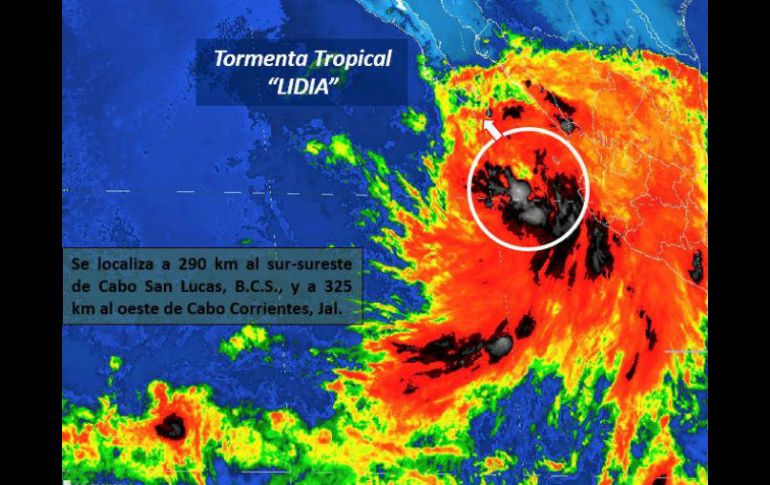 CIUDAD DE MÉXICO (30/AGO/2017).- El Servicio Meteorológico Nacional informó la tarde de este miércoles que se formó la tormenta tropical "Lidia" al sur de Baja California.En la cuenta de Twitter de Conagua Clima, refirió que "Lidia" se localiza a 290 kilómetros al sur-sureste de Cabo San Lucas, Baja California Sur, y presenta desplazamiento al noroeste a 11 km/h.La zona de Vigilancia, informa Conagua, es para Baja California Sur, desde Puerto San Andresito hasta Loreto; y para Sinaloa desde Bahía Tempehuaya hasta Huatabampito.Ante ello, se prevén tormentas intensas con puntuales torrenciales (150 a 250 mm) en Nayarit, Jalisco y Colima; tormentas muy fuertes con puntuales intensas (75 a 150 mm) en Baja California Sur, Durango, Sinaloa y Michoacán; y tormentas fuertes con puntuales muy fuertes (50 a 75 mm) en Zacatecas, Aguascalientes y Guanajuato.Ante ello, se emitió una alerta en el sur de Sinaloa, sobre todo en el puerto de Mazatlán, donde se espera que la noche de este miércoles se presenten fuertes lluvias.José Enrique Mora Reyes, capitán del puerto, señaló que los diversos modelos de pronósticos que se tienen sobre este fenómeno, se presentarán lluvias torrenciales, acompañadas de fuertes vientos, por lo que se vigila su comportamiento en su desplazamiento al noroeste del país.Protección Civil de Sinaloa informó que se tienen listos 110 albergues, para brindar una atención, en una primera fase a 54 mil personas.
