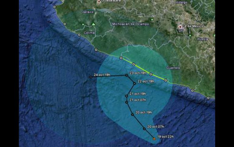 México | Podría convertirse en la tormenta tropical 'Raymond' Se forma nueva depresión tropical en el Pacífico Podría convertirse en la tormenta tropical 'Raymond' por la mañana del domingo Por: EL INFORMADOR 19 de octubre de 2013 - 21:42 hs La depresión tropical se encuentra al sur de Guerrero y al sureste de Michoacán. TOMADA DE cna.gob.mx / GUADALAJARA, JALISCO (19/OCT/2013).- La Comisión Nacional del Agua ( Conagua) informó esta tarde que el sistema de baja presión localizado cerca de las costas de Guerrero y Michoacán se ha intensificado hasta formar la depresión tropical número 17 de la temporada con potencial para convertirse en la tormenta tropical “Raymond” “El sistema de BajaPresión al sur de Acapulco Gro, se #intensificó a #DEPRESIÓNTROPICAL No. 17-E”, publicó la dependencia en su cuenta @conagua_clima de la red social Twitter. El sistema podría convertirse en la tormenta tropical “Raymond” por la mañana del domingo mientras continúa avanzando hacia las costas de Guerrero y Michoacán, lo que generará potencial de lluvia de muy fuerte a intensa en Chiapas, Oaxaca, Guerrero y Michoacán. El fenómeno se encuentra a 330 kilómetros al sur de Acapulco, Guerrero, y a 470 kilómetros al sureste de Lázaro Cárdenas, Michoacán y se desplaza al noroeste a 13 kilómetros por hora con vientos sostenidos de 55 kilómetros por hora con rachas de hasta 75 kilómetros por hora. La Conagua recomienda a la población y a la navegación marítima mantener precauciones y atender a las recomendaciones emitidas por las autoridades del Sistema Nacional de Protección Civil. Temas Conagua Estados Tormenta tropical Recibe las últimas noticias en tu e-mail Todo lo que necesitas saber para comenzar tu día Registrarse implica aceptar los Términos y Condiciones