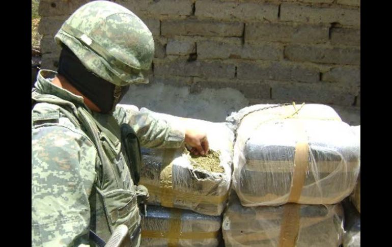 México | La dependencia informo sobre la detención de una persona en flagrancia delictiva Sedena destruye 262 plantíos de enervantes en Durango Se ubicaron y destruyeron 151 plantíos de mariguana en una superficie de 18.91 hectáreas y 111 plantíos de amapola Por: SUN 22 de septiembre de 2012 - 16:50 hs Se decomisaron 9 kilogramos de mariguana en greña; 30 kg. de mariguana empaquetada. ARCHIVO / DURANGO, DURANGO (22/SEP/2012).- La Secretaría de la Defensa Nacional (Sedena), a través de las Comandancias de la III Región Militar y Décima Zona Militar, informó sobre el aseguramiento y destrucción de 262 plantíos de enervantes en Durango. La dependencia, además, dio a conocer mediante un comunicado sobre la detención de una persona en flagrancia delictiva y el decomiso de armamento así como la localización de un campamento durante el periodo comprendido del 11 al 20 de septiembre del presente año. Se detalló que como parte del trabajo que se lleva a cabo de acuerdo a la estrategia del estado mexicano en contra del narcotráfico y la delincuencia organizada se decomisaron: 9 kilogramos (Kg) de mariguana en greña; 30 kg. de mariguana empaquetada; 17 armas largas; 10 armas cortas; 63 cargadores para diversas armas y dos mil 570 cartuchos de diferentes calibres. Además de una granada de fragmentación; seis chalecos antibalas; un campamento y dos vehículos. De igual forma, se ubicaron y destruyeron 151 plantíos de mariguana en una superficie de 18.91 hectáreas y 111 plantíos de amapola en una superficie de 9.32 hectáreas. Temas Sedena Estados Durango Mariguana Recibe las últimas noticias en tu e-mail Todo lo que necesitas saber para comenzar tu día Registrarse implica aceptar los Términos y Condiciones