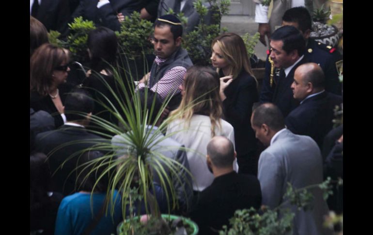 México | Angélica Rivera y Miguel Ángel Osorio Chong acuden en representación de Peña Nieto Sepultan a Zabludovsky en Panteón Israelita Angélica Rivera y Miguel Ángel Osorio Chong acuden en representación de Peña Nieto Por: SUN 2 de julio de 2015 - 14:32 hs CIUDAD DE MÉXICO (02/JUL/2015).- El periodista Jacobo Zabludovsky fue sepultado en el Panteón Israelita tras la realización de un acto fúnebre judío al que asistieron la primera dama Angélica Rivera y el secretario de Gobernación, Miguel Ángel Osorio Chong, en representación del Presidente Enrique Peña Nieto. Rivera y Osorio Chong arribaron momentos antes de que el féretro con el cuerpo del periodista fuera llevado a su última morada; ambos expresaron sus condolencias a la señora Sarah Nerubay, esposa de Zabludovsky, y a sus hijos. Bajo una intensa lluvia se llevó a cabo la sepultura. Al acto fúnebre acudieron, entre otros, el presidente Ejecutivo y del Consejo de Administración de El Universal, Juan Francisco Ealy Ortiz, acompañado del ex rector de la UNAM, Juan Ramón de la Fuente, quien lamentó esa "gran pérdida". Asimismo, llegaron José Narro, actual rector de la máxima casa de estudios; el senador Emilio Gamboa; los empresarios Lorenzo Servitje, fundador de Bimbo, y Emilio Azcárraga, presidente de Televisa. Estuvieron presentes los periodistas Joaquín López Dóriga, Heriberto Murrieta y Katia D'Artigues, además de actores, entre los que se encontraban María Victoria y Mauricio Herrera, quienes coincidieron en que Jacobo Zabludovsky fue un hombre importante para el periodismo mexicano y pilar de esta profesión en el medio televisivo. Temas Periodismo Estados Jacobo Zabludovsky Decesos de personalidades Lee También ALERTA en Jalisco por formación de ciclón "Raymond" Esta es la última guerra que Trump resolvió, según él mismo Las guerras que Trump dice haber resuelto y por las que merece el Nobel ¿Cuándo la tormenta tropical "Raymond" estará cerca de Jalisco? Recibe las últimas noticias en tu e-mail Todo lo que necesitas saber para comenzar tu día Registrarse implica aceptar los Términos y Condiciones