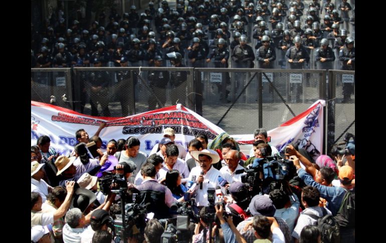 México | La agrupación representa a maestros procedentes de 21 estados Subsecretario de Gobierno recibe a comisión del CNTE La agrupación representa a maestros procedentes de 21 estados que marcharon encabezados por el secretario de Organización de la Sección 22 de Oaxaca Por: NTX 4 de abril de 2013 - 13:10 hs Se estima que unos ocho mil maestros marchan para manifestar su repudio a la reforma educativa promulgada en febrero pasado. EFE / CIUDAD DE MÉXICO (04/ABR/2013).- El titular de la Subsecretaría de Gobierno, Luis Enrique Miranda Nava, de la Secretaría de Gobernación, recibió a una comisión de 25 maestros integrantes de la Coordinadora Nacional de Trabajadores de la Educación (CNTE). La comisión de la disidencia magisterial ingresó al Antiguo Palacio de Cobián luego que marchó junto con unos cinco mil simpatizantes desde el Zócalo capitalino, para solicitar la instalación de una mesa de negociación y atención a su pliego petitorio. Poco después de las 11:00 horas, los 25 maestros fueron recibidos por el funcionario, sin que hasta el momento se conozcan avances. La comisión representa a los maestros procedentes de 21 estados que marcharon encabezados por el secretario de Organización de la Sección 22 de Oaxaca, Francisco Villalobos. Antes de ingresar, en un mítin frente a la dependencia, la dirigencia reiteró su pliego petitorio por la defensa del sindicalismo, rechazo a la reforma constitucional en materia educativa, cancelación de órdenes de aprehensión contra maestros de Guerrero y tomar en cuenta a los normalistas. Villalobos Ricárdez informó que dependiendo de los acuerdos en la mesa de negociación con los funcionarios federales, la Coordinadora definirá las acciones a seguir. El secretario general de la Sección 9, Francisco Bravo, dijo a su vez que los maestros no se oponen a una transformación educativa, sino que piden una reforma abierta a la discusión pública, además de la abrogación de los artículos 3 y 73. Bravo Herrera también dio a conocer que los días 26 y 27 de abril "daremos mayor cuerpo a nuestra propuesta de carácter educativo, que partirá de un enfoque humanista". Temas Segob Estados Reforma Educativa Distrito Federal CNTE Manifestaciones en la Cd. de México Recibe las últimas noticias en tu e-mail Todo lo que necesitas saber para comenzar tu día Registrarse implica aceptar los Términos y Condiciones
