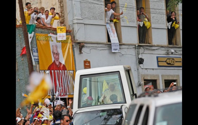 México | Mañana a las 10:00 horas ofrecerá una misa en el Parque Bicentenario Termina Benedicto XVI segundo día de actividad pública A las 21:35 horas regresó al Colegio Miraflores, después de haber recibido las llaves de Guanajuato y león; una reunión con el Presidente Felipe Calderón y emitir un mensaje a los niños mexicanos Por: NTX 24 de marzo de 2012 - 21:23 hs Benedicto XVI fue trasportado en el Papamóvil de regreso a León. / LEÓN, GUANAJUATO (24/MAR/2012).- El Papa Benedicto XVI concluyó a las 21:35 horas de este sábado su recorrido desde Guanajuato a León a bordo del Papamóvil, y terminó así su segundo día de actividad pública. Joseph Ratzinger llegó al Colegio Miraflores, luego de que durante este sábado se reunió en privado con el presidente Felipe Calderón Hinojosa, además de recibir las llaves de las ciudades de Guanajuato y León. El pontífice ofreció además un discurso en el que instó a todos a proteger y cuidar a los niños de México, para que nunca se apague su sonrisa, puedan vivir en paz y mirar al futuro con confianza, al saludar a más de tres mil infantes en la Plaza de la Paz de Guanajuato. Temas Papa Benedicto Guanajuato .El Papa Benedicto XVI en México Recibe las últimas noticias en tu e-mail Todo lo que necesitas saber para comenzar tu día Registrarse implica aceptar los Términos y Condiciones