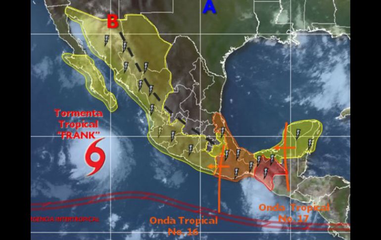 México | El fenómeno se mueve hacia el oeste. provocando vientos de 100 kilómetros por hora Tormenta 'Frank' provoca altas olas en Baja California Sur El fenómeno se debilita y se mueve hacia el oeste, provocando vientos de 100 kilómetros por hora Por: NTX 25 de julio de 2016 - 09:34 hs 'Frank' está cada vez más lejos de las costas mexicanas, de acuerdo al reporte del SMN. ESPECIAL / smn.cna.gob.mx/ LA PAZ, BAJA CALIFORNIA (25/JUL/2016).- La tormenta tropical “Frank” se localiza al suroeste de la península de Baja California, la cual se debilita paulatinamente y se mueve lentamente hacia el oeste, lo que genera rachas de viento y olas altas en la entidad. De acuerdo con el Servicio Meteorológico Nacional ( SMN) en el estado se sentirán vientos de 100 kilómetros por hora y rachas de 120 kilómetros, así como olas de cuatro metros de altura. Se espera una temperatura máxima de 34 grados centígrados y mínima de 26 grados, con cielo nublado la mayor parte del día y lloviznas. Las autoridades estatales de Protección Civil llamaron a extremar precauciones a la población por lluvias, viento y oleaje, incluso para la navegación marítima, y pidieron atender las recomendaciones emitidas por el Sistema Nacional de Protección Civil. Temas Estados Tormenta tropical Baja California Sur SMN Lluvias en el país Lee También "Jerry" avanza en el Atlántico mientras "Priscilla" se desvanece "Raymond" aparecerá en horas y afectará a estos estados por su trayectoria TODO sobre el frente frío que perturbará a México en horas Lluvias en CDMX: Pronóstico de lluvia hoy, 9 de octubre, a esta hora Recibe las últimas noticias en tu e-mail Todo lo que necesitas saber para comenzar tu día Registrarse implica aceptar los Términos y Condiciones