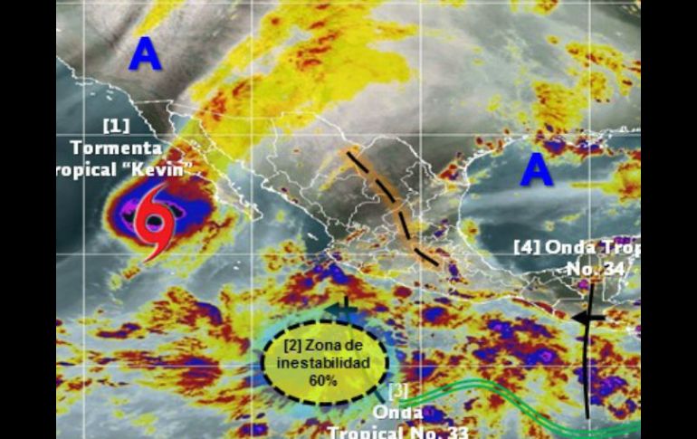 México | Meteorólogos de EU prevén que este domingo se aleje de costas mexicanas Tormenta 'Kevin' se debilita en Baja California Sur Meteorólogos de EU prevén que este domingo dé un giro al oeste y se aleje de costas mexicanas Por: NTX 4 de septiembre de 2015 - 21:39 hs 'Kevin' tiene vientos máximos sostenidos de 85 kilómetros por hora y se espera que se debilite rápidamente. ESPECIAL / smn.cna.gob.mx MIAMI, ESTADOS UNIDOS (04/SEP/2015).- La tormenta “Kevin” en el Pacífico continúa debilitándose, informó el Centro Nacional de Huracanes (CNH) de Estados Unidos. “Kevin” se ubicaba esta noche a 555 kilómetros al oeste del estado de Baja California Sur, y se desplaza en dirección norte. Se espera un giro del sistema al oeste para el próximo domingo, con lo que se alejaría de las costas mexicanas. “Kevin” tiene vientos máximos sostenidos de 85 kilómetros por hora y se espera que se debilite rápidamente y se degenere en un remanente de baja presión para el próximo domingo. Por otro lado, “Fred” en el Atlántico, la sexta tormenta de la cuenca este año, se degradó a depresión tropical y se ubicaba esta noche a dos mil 65 kilómetros al suroeste de las islas Azores. La depresión tiene vientos máximos de 55 kilómetros por hora y se espera que se torne en un remanente de baja presión para mañana sábado. El sistema se desplaza hacia el oeste-noroeste a 15 kilómetros por hora, mientras algunos modelos de computadora del CNH no descartan la posibilidad de que se regenere en 48 horas y vuelva a ser depresión tropical. El CNH observa un nuevo sistema de nubosidad cerca de la costa oeste de África y le concede un 60 por ciento de posibilidad de convertirse en depresión tropical. Temas Estados Clima Tormenta tropical Baja California Sur Recibe las últimas noticias en tu e-mail Todo lo que necesitas saber para comenzar tu día Registrarse implica aceptar los Términos y Condiciones