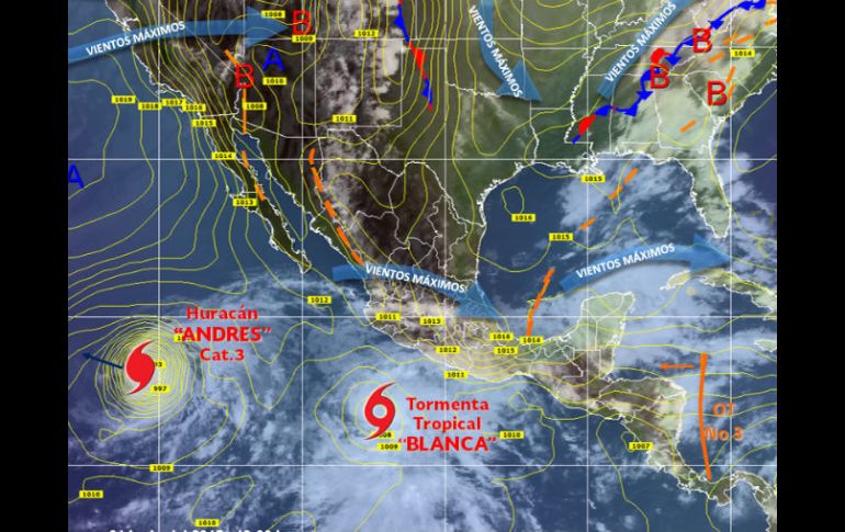 México | El Centro Nacional de Huracanes de EU señala que por el momento no hay alertas Tormenta tropical 'Blanca' sería huracán el martes El Centro Nacional de Huracanes de EU señala que por el momento no hay alertas en las costas Por: AP 1 de junio de 2015 - 19:18 hs 'Blanca' la segunda tormenta con nombre de la temporada, se localiza la tarde del lunes a unos 545 kilómetros de Zihuatanejo. TWITTER / @conagua_clima MIAMI, ESTADOS UNIDOS (01/JUN/2015).- Dos tormentas se agitan en el Pacífico oriental, pero se pronostica que ninguna de ellas tocará tierra. “Blanca”, la segunda tormenta con nombre de la temporada, se localiza la tarde del lunes a unos 545 kilómetros (340 millas) al sur-suroeste de Zihuatanejo, México. Tiene vientos máximos sostenidos de 75 kilómetros por hora (45 millas) y ha estado avanzando sin rumbo fijo las últimas horas. El Centro Nacional de Huracanes, en Miami, informó que por el momento no hay alertas o avisos en las costas, pero que se prevé que la tormenta gane fuerza y se convierta en huracán el martes. Los meteorólogos dicen que se trata de una tormenta que avanza lentamente. Mientras tanto, el huracán “Andrés” continuaba debilitándose el lunes por la tarde. Se encuentra a unos mil 405 kilómetros (875 millas) al suroeste del extremo sur de Baja California y avanza al oeste-noroeste a 13 kph (8 mph), con vientos sostenidos máximos de 205 kph (125 mph). Tampoco hay avisos para las costas. Temas Estados Huracanes Clima Temporada de lluvias Tormenta tropical Lee También ¿Cómo se comportará el frente frío núm. 7 este jueves? Vecinos de Poza Rica alzan la voz sobre el desastre por lluvias Clima: Frente frío 7 dejará de afectar a México en esta fecha Yeri Mua hace donación para damnificados de Poza Rica Recibe las últimas noticias en tu e-mail Todo lo que necesitas saber para comenzar tu día Registrarse implica aceptar los Términos y Condiciones