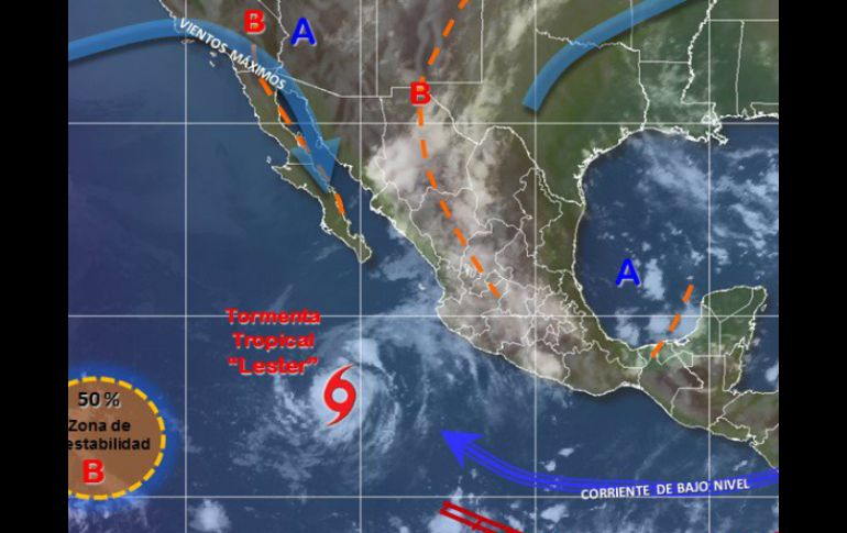 CIUDAD DE MÉXICO (25/AGO/2016).- El Servicio Meteorológico Nacional (SMN) recomendó a la población en general de Baja California Sur extremar precauciones ante la formación de la tormenta tropical ''Lester'', la cual se localiza al sur-suroeste de la península de Baja California. Este jueves se convirtió en tormenta la depresión tropical Trece-E del océano Pacífico, se localiza a 295 kilómetros al sur-suroeste de Isla Socorro, Colima y a 765 kilómetros al sur-suroeste de Cabo San Lucas, Baja California Sur. Se desplaza al oeste-noroeste a 19 kilómetros por hora (km/h) con vientos máximos sostenidos de 65 km/h y rachas de 85 km/h. De acuerdo con el pronóstico se prevén lluvias con tormentas puntuales muy fuertes en la zona, por lo que se recomienda extremar precauciones por viento y oleaje, incluyendo la navegación marítima en las inmediaciones del sistema. También deben tender las recomendaciones emitidas por las autoridades del Sistema Nacional de Protección Civil. ''Lester'' podría alcanzar la categoría de huracán en la escala Saffir-Simpson durante el fin de semana. Se prevé que el sábado se ubique a 685 kilómetros al oeste de Isla Socorro y a 950 kilómetros de Cabo San Lázaro, Baja California Sur como huracán categoría 1. A su vez, la baja presión al suroeste de la península de Baja California presenta 50 por ciento de probabilidad de convertirse en ciclón tropical durante las próximas 48 horas. El fenómeno climático se localizó a dos mil 85 kilómetros al suroeste de Cabo San Lucas, con desplazamiento hacia el oeste a 24 kilómetros por hora, con vientos sostenidos de 25 kilómetros por hora y rachas de 35 kilómetros por hora.