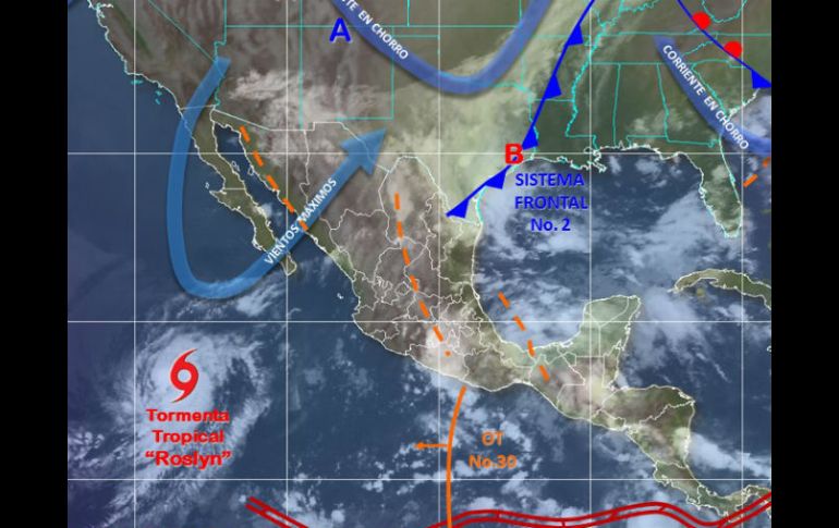CIUDAD DE MÉXICO (26/SEP/2016).- Esta mañana de lunes se formó la tormenta tropical “Roslyn” en el Océano Pacífico, informó la Comisión Nacional del Agua (Conagua).En su cuenta de Twitter, el coordinador Nacional de Protección Civil, Luis Felipe Puente, informó que el ciclón no afecta al país.Detalló que “Roslyn” se localiza a mil 190 kilómetros al oeste-suroeste de Cabo San Lucas, Baja California Sur, y a 918 km al oestesuroeste de Isla Socorro, Colima.El ciclón presenta vientos máximos sostenidos de 65 kilómetros por horas y rachas de 85 kilómetros por hora.