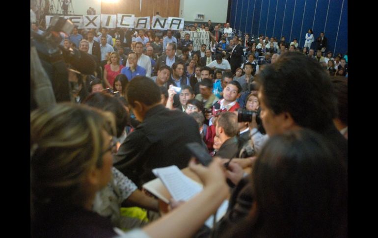 México | Estaba previsto para las 10:00 horas en el WTC de la ciudad de México Trabajadores de Mexicana “revientan” evento de JVM Carlos Alberto Pérez coordinador de redes de la campaña, dijo que buscaron una solución para que Vázquez Mota atendiera sus peticiones, sin embargo la actitud de los trabajadores no lo permitió Por: SUN 31 de marzo de 2012 - 11:25 hs Presuntos trabajadores de la Compañía Mexicana de Aviación impidieron el acto de campaña de Vázquez Mota. NOTIMEX / CIUDAD DE MÉXICO (31/MAR/2012).- Trabajadores de Mexicana de Aviación reventaron un encuentro ciudadano de la candidata presidencial del PAN, Josefina Vázquez Mota, que estaba previsto para las 10:00 horas en el WTC de la ciudad de México. Rogelio Gómez-Hermosillo, integrante de la asociación Alianza Cívica, aseguró que toda vez que los trabajadores de Mexicana no buscaban un diálogo sino agredir e insultar, le pidieron a la candidata panista no presentarse en el evento. Minutos antes el diputado Carlos Alberto Pérez, coordinador de redes de la campaña, dijo que buscaron una solución para que Vázquez Mota atendiera sus peticiones, sin embargo la actitud de los trabajadores de la aviación no lo permitió. Recordó que en la campaña del Estado de México un grupo de presuntos ciudadanos también trato de reventar el evento del entonces candidato estatal Luis Felipe Bravo Mena. Gómez-Hermosillo pidió a los representantes de organizaciones civiles guardar la calma y esperar una nueva fecha para continuar con el encuentro con la aspirante presidencial. Temas Josefina Vázquez Mota Mexicana de Aviación Elecciones México 2012 Lee También ¿Por qué se extingue el Instituto Federal de Telecomunicaciones? "La Mañanera" de Sheinbaum de hoy viernes 17 de octubre de 2025 Raymundo Riva Palacio: El asesinato que no quieren investigar Sin maíz no hay país Recibe las últimas noticias en tu e-mail Todo lo que necesitas saber para comenzar tu día Registrarse implica aceptar los Términos y Condiciones