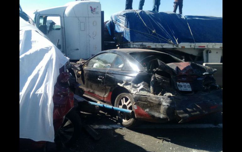México | El saldo preliminar es de seis muertos, 25 lesionados y 57 vehículos chocados Tras carambola, reabren Circuito Exterior en dirección a Querétaro El saldo preliminar del accidente es de seis muertos, 25 lesionados y 57 vehículos chocados Por: SUN 24 de diciembre de 2015 - 18:32 hs El choque múltiple ocurrió en el kilómetro 7 + 800 del Circuito Exterior Mexiquense, en el sentido a Querétaro. TWITTER / @PoliciaFedMx CIUDAD DE MÉXICO (24/DIC/2015).- Quedó reabierta la circulación del Circuito Exterior Mexiquense luego de más de 12 horas de caos, por siete carambolas que dejaron un saldo preliminar de seis personas muertas, 25 lesionados y 57 vehículos chocados. La circulación se restablece en ambos sentidos, reporta en su cuenta de Twitter la Policía Federal. A las 17:00 ambos sentidos de esta autopista de cuota que une las autopistas México Querétaro, México Pachuca y México Puebla al norte del Valle de México, quedó liberada en ambos sentidos. Esto, luego de choques múltiples que se empezaron a registrar desde las 4:30 de la mañana y que a lo largo de cuatro horas sumaron un total de siete carambolas, debido a la intensa neblina, velocidad excesiva, falta de iluminación y señalamientos luminosos, afirmaron conductores afectados. Caminos y Puentes Federales (Capufe) informó que la megacarambola que se registró la mañana de este jueves en el Circuito Exterior Mexiquense (CEM) afecta la vialidad de la Autopista México-Querétaro, a la altura del kilómetro 56. El choque múltiple ocurrió en el kilómetro 7 + 800 del Circuito Exterior Mexiquense, en el sentido a Querétaro, a la altura del municipio de Teoloyucan. Cuatro de las seis personas fallecidas pertenecen a una misma familia. Temas Estados Carreteras Accidentes México Estado de México Lee También Hoy No Circula Sabatino: Autos que descansan este 11 de octubre en CDMX y Edomex CURP biométrica : ¿Dónde sacar cita para el trámite en CDMX? Detienen a Lex Ashton 'N' por homicidio y tentativa de homicidio Fallece influencer Fede Dorcaz en presunto intento de robo en la CDMX Recibe las últimas noticias en tu e-mail Todo lo que necesitas saber para comenzar tu día Registrarse implica aceptar los Términos y Condiciones