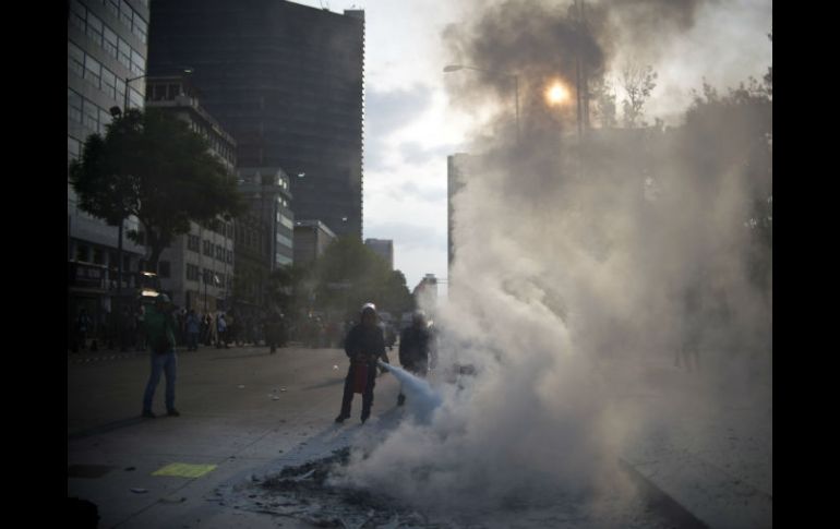 México | La SSPDF informa que hay un detenido; los organizadores dicen que son cuatro Tras gresca entre policías y manifestantes, liberan las calles La SSPDF informa que hay un detenido; el vocero de los padres de normalistas dice que son cuatro Por: SUN 26 de mayo de 2015 - 20:23 hs CIUDAD DE MÉXICO (26/MAY/2015).- Tras la gresca protagonizada entre manifestantes y policías; las vialidades en torno al Hemiciclo a Juárez fueron liberadas. Felipe de la Cruz, vocero de los padres de los 43 normalistas, informó que fueron detenidas cuatro personas durante la riña. Sin embargo, la SSPDF indicó que sólo se realizó la detención de un joven identificado como José Antonio N, de 22 años. Organizadores de las marchas solicitaron a las autoridades liberar a los cuatro presuntos detenidos. Esta tarde, al finalizar el mitin por los normalistas desaparecidos, un grupo de manifestantes enmascarados comenzó a quitar la propaganda electoral en el Hemiciclo, para después quemarla. Tras esta acción, policías a bordo de motociclistas intentaron evitarlo, lo cual provocó una riña entre ambos bandos. Temas SSPDF Estados Manifestaciones en la Cd. de México Caso Ayotzinapa Lee También Clima en Ciudad de México hoy: el pronóstico para el domingo 12 de octubre de 2025 Reformas a Ley de Amparo no limita derechos ciudadanos Festival del Pan de Muerto en CDMX: Fechas, horarios y actividades "Raymond" baja su potencia, pero tocará tierra en horas Recibe las últimas noticias en tu e-mail Todo lo que necesitas saber para comenzar tu día Registrarse implica aceptar los Términos y Condiciones