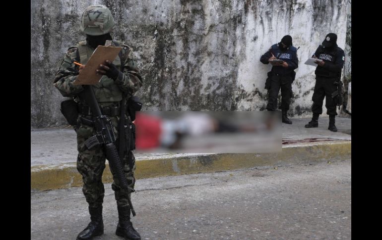 México | La lucha entre los cárteles de la droga dejó en México más 34 mil muertos desde 2006 Tres hombres son asesinados en Acapulco En Acapulco aparecieron tres personas muertas a causa de la ola de violencia que se vive en Guerrero Por: AFP 5 de febrero de 2011 - 13:29 hs En el lugar se ubicó una cartulina con un mensaje del narcotráfico, sin que las autoridades revelaran su contenido. AP / CIUDAD DE MÉXICO (05/FEB/2011).-Tres hombres aparecieron muertos el sábado en el balneario mexicano de Acapulco (sur), en medio de la escalada de violenta que vive ese tradicional puerto, donde organizaciones criminales disputan el control de actividades delictivas, informó la secretaría de seguridad estatal. Policías de Guerrero (sur), estado en el que se encuentra Acapulco, localizaron el sábado por la mañana bajo un puente, ubicado en el norte de la ciudad, "tres bolsas negras, en cuyo interior se encontraban los restos de una persona del sexo masculino", dijo la dependencia en un reporte policiaco. En el lugar se ubicó una cartulina con un mensaje del narcotráfico, sin que las autoridades revelaran su contenido. En otra zona del puerto fueron encontrados también los cuerpos de dos hombres maniatados y con la cabeza cubierta con cinta adhesiva, que fueron asesinados con balazos en la cabeza, añadió el reporte policial. Acapulco inició 2010 con la decapitación el ocho de enero pasado de 15 personas, mientras que en septiembre pasado 22 turistas fueron secuestrados y un mes después 20 de ellos aparecieron asesinados, por un grupo local de narcotráfico que dijo haberlos confundido con integrantes de un cártel antagónico. Una cruenta lucha entre los cárteles de la droga dejó en México más 34 mil muertos desde diciembre de 2006, cuando el presidente Felipe Calderón lanzó su estrategia de combate al narcotráfico con 50 mil militares. Temas Narcotráfico Crimen Organizado Estados Acapulco Lee También "Raymond" baja su potencia, pero tocará tierra en horas En Hidalgo, caminos destrozados complican rescates y ayuda Así se celebrará en Guanajuato el Día de Muertos Lluvias dejan 37 muertos en cuatro estados de México Recibe las últimas noticias en tu e-mail Todo lo que necesitas saber para comenzar tu día Registrarse implica aceptar los Términos y Condiciones