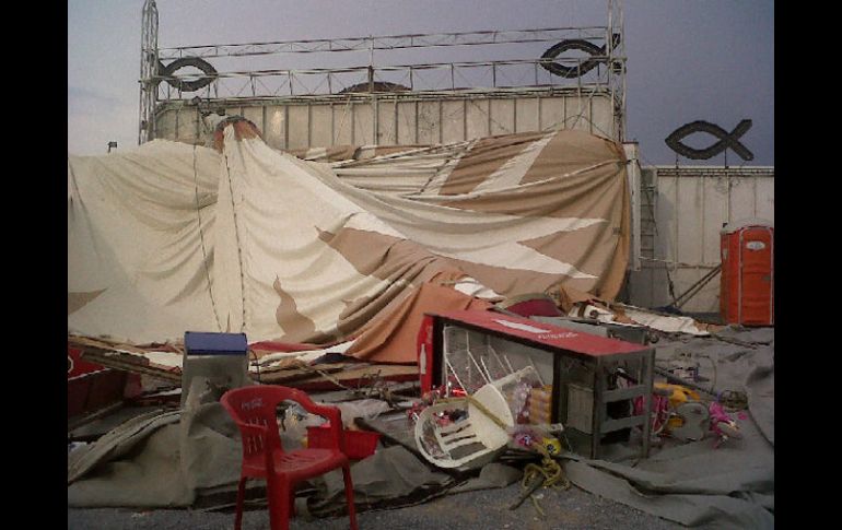 México | Desplome de carpa deja 38 personas con lesiones de gravedad Viento derrumba circo en Coahuila Desplome de carpa deja 38 personas con lesiones de gravedad Por: NTX 29 de mayo de 2011 - 21:00 hs Una zona del circo luego del derrumbe por el viento. Imagen tomada de Twitter @luziamg / SALTILLO, COAHUILA (29/MAY/2011).- Cientos de personas resultaron lesionadas luego de desplomarse la carpa del Circo Famoso de México alrededor de las 16:00 horas de hoy. El accidente se debió a las ráfagas de viento de 60 kilómetros por hora, que terminaron por derrumbar la carpa, cuando estaba en plena función. La Unidad de Protección Civil de Saltillo informó que al momento del accidente se encontraban 350 personas en el lugar, las cuales en su mayoría resultaron con golpes y lesiones. Se informó que 38 personas resultaron con lesiones de gravedad, por lo que fueron trasladadas a las salas de urgencia de los hospitales de la ciudad, por paramédicos de Cruz Roja y Bomberos. Por su parte, la Dirección de Seguridad Pública Municipal y de la Fiscalía General del Estado, reportan que la situación está totalmente controlada y las personas heridas ya reciben la atención médica necesaria. Temas Estados Accidentes México Coahuila Lee También Un país donde la salud mental no existe en el presupuesto El precio de la paz en Gaza Lluvias dejan 29 muertos en un día en México Clima en Ciudad de México hoy: el pronóstico para el sábado 11 de octubre de 2025 Recibe las últimas noticias en tu e-mail Todo lo que necesitas saber para comenzar tu día Registrarse implica aceptar los Términos y Condiciones