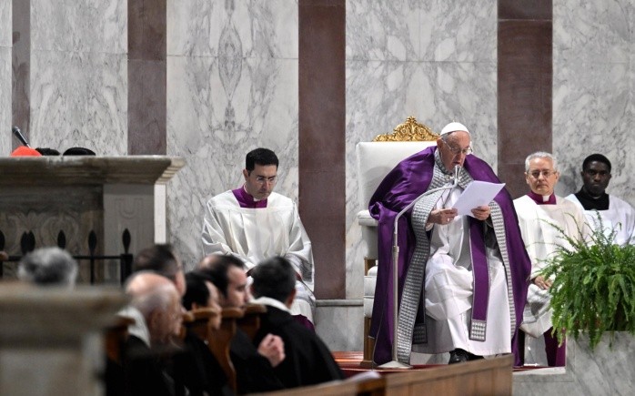 El Papa Francisco arremetió hoy contra el individualismo y la "idolatría del yo" y advirtió que en la Iglesia "no cuenta lo exterior o los juicios humanos" sino el "amor y la verdad" en su homilía durante la misa por el Miércoles de Ceniza, en cuya procesión no participó por sus problemas de movilidad."La ceniza que hoy recibimos en la cabeza nos dice que cada presunción de autosuficiencia es falsa y que idolatrar el 'yo' es destructivo y nos encierra en la jaula de la soledad", dijo Francisco, sentado junto al altar de la basílica de Santa Sabina, una actitud que resumió con "mirarse al espejo con la fantasía de ser perfectos o de estar en el centro del mundo".Como es tradición, el Pontífice presidió este rito que abre la Cuaresma, el periodo de cuarenta días hasta la Semana Santa, en la antigua basílica de Santa Sabina, en la colina romana del Aventino.Sin embargo, no pudo participar en la procesión con la que el clero llega cada año a este templo desde la cercana iglesia de San Anselmo, a causa de los problemas de rodilla que le impiden permanecer de pie desde hace algunos meses.Por esa misma razón, el Pontífice leyó su homilía sentado y ataviado con paramentos morados, propios de la Cuaresma: "Este es el tiempo favorable para convertirnos, para cambiar la mirada antes que nada sobre nosotros mismos, para vernos por dentro", invitó ante obispos, cardenales, curas, religiosas y los frailes dominicos de Santa Sabina."Cuántas veces nos centramos en nuestros deseos o en lo que nos falta, alejándonos del centro del corazón, olvidándonos de abrazar el sentido de nuestro ser en el mundo", refirió.Y alentó: "La Cuaresma es un tiempo de verdad para quitarnos las máscaras que llevamos cada día aparentando ser perfectos a los ojos del mundo; para luchar, como nos ha dicho Jesús en el Evangelio, contra la falsedad y la hipocresía. No las de los demás, sino las nuestras".Su mensaje implica también a la Iglesia católica, cuyos "gestos y ritos muchas veces no tocan la vida, no son auténticos", lamentó."Quizá los hacemos sólo para que los demás nos admiren, para recibir el aplauso, para atribuirnos el crédito. Recordamos que en la vida personal, como en la vida de la Iglesia, lo que no cuenta es el exterior, los juicios humanos y el aprecio del mundo, sino la mirada de Dios, que lee el amor y la verdad", sostuvo.Para cumplir con estos objetivos, Francisco recomendó "tres grandes vías": La limosna, que no debe ser un "gesto rápido para limpiarse la conciencia" sino experimentar la pobreza del prójimo, la oración sincera y el ayuno.Acto seguido, Francisco, levantado por unos instantes, se retiró el solideo para recibir en su cabeza las cenizas de parte del cardenal italiano y penitenciario mayor, Mauro Piacenza, que sustituyó al Papa a la cabeza de la procesión que abrió esta liturgia.Después, el Pontífice impuso la ceniza a algunos miembros del clero con la fórmula "Recuerda, hombre, que polvo eres y en polvo te convertirás".JM