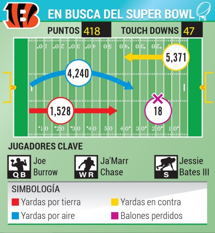 Un equipo que desde la semana 9 de la presente temporada no pierde, que sufrió un partido cancelado en la semana 17 por el tema de Damar Hamlin de Buffalo, y que viene de derrotar a los propios Bills en la ronda divisional. No se le puede llamar víctima a los Bengals de Cincinnati, aun y cuando este domingo se meterá al Arrowhead Stadium para medirse a los Chiefs de Kansas City en la final de la Conferencia Americana.La victoria por 27-10 sobre Bills solo viene a confirmar que los Bengals de Cincinnati no son un equipo más, que su presencia en el Super Bowl del año pasado no fue mera casualidad y por segundo año consecutivo se meten en estas instancias, buscando eliminar al que hoy por hoy es el favorito, no solo para ganar este juego, sino para llevarse el anillo de campeón de la NFL.Y es que podría parecer que la historia de los Bengals es un cuento de hadas, que podría parecer de “Cenicienta” por lo sucedido el año pasado, pero aun así, este equipo, que estuvo a una sola jugada de ganar el Super Bowl frente a Los Ángeles, de no ser por la captura de Aaron Donald a Joe Burrow en los últimos instantes del juego cuando tenía solo a un receptor, estaríamos hablando de los campeones de la NFL, y este año con una línea ofensiva completamente renovada han mostrado que llegaron para quedarse por un buen rato. Se adaptan a cualquier situaciónLa manera en la que impusieron condiciones con todos los factores en contra en Buffalo es de reconocerse, desde el clima, el poder ofensivo de los Bills y el hecho de que salían como víctimas, y en gran medida, pese a que colocaron a tres suplentes en la línea ofensiva, permitiendo sólo una captura, y corriendo para más de 150 yardas.Hoy en día, Joe Burrow juega un rol significativo en el equipo. Él fue responsable de algunas de las capturas que sufrió contra los Titans en ese brutal partido en la anterior postemporada, y de algunos de los golpes en las primeras semanas de la campaña; desde entonces, Burrow es muy bueno para deshacerse del balón rápido. Ante Buffalo, le tomó 2.5 segundos sacar el balón en promedio, que fue el segundo más rápido del fin de semana. Jalen Hurts (Eagles) fue el único mariscal de campo que lanzó más rápido el ovoide, cuyos tres partidos en los que promedió sus más rápidos tiempos de lanzamiento fueron en sus tres juegos contra Giants.Otra de las cualidades del mariscal de campo de los Bengals es su pase, algo que hace desde su etapa en la universidad, mientras que la presión se mitigó por sus decisiones, Burrow fue capturado solo una vez en 37 retrocesos de pase, y fue apresurado en solo el 21.1 por ciento de las oportunidades, el promedio más bajo para cualquier mariscal de campo en la ronda divisional.Si los Bengals quieren tener posibilidades de poder derrotar a los Chiefs en el Arrowhead, lo primero que deben tener en cuenta es que no le pueden dejar la batuta a Patrick Mahomes y compañía, sino que Joe Burrow debe tomar el control y seguir ofendiendo, y es que lanzó para solo 242 yardas ante Buffalo porque la ofensiva se divertía corriendo el balón. El ataque terrestre de Cincinnati se combinó para 172 yardas, 13 primeros intentos, y una anotación en 34 acarreos contra los Bills.Esa línea ofensiva tan criticada creó enormes agujeros para que pasaran sus corredores. Joe Mixon y Samaje Perine también serán claves para la victoria. Ocuparon el cuarto lugar en diferencial colectivo con respecto a la defensiva contraria por tierra esta temporada, y fueron tremendamente impresionantes contra los Bills.Cuando se habla de equipos en la NFL que hacen todo lo posible para tocar fondo, reconstruirse y encontrar en el Draft al hombre que los ponga en un lugar privilegiado, no hay mejor ejemplo que el de los Bengals de Cincinnati, quienes tuvieron la recompensa en 2020 de encontrarse a Joe Burrow, luego de haber sido el peor equipo de la Liga el año anterior. Burrow llegó a Cincinnati para sacar de la mediocridad a los Bengals.Antes de “Joe Cool” lo más cerca que Cincinnati ha estado de levantar un trofeo Vince Lombardi fue en el siglo pasado, cuando comandados por Boomer Esiason perdieron los Super Bowls XVI y XXIII ante San Francisco en los años 80.Poco más de tres décadas después, el pasador de 26 años nacido en Ames, Iowa, los llevó al Super Bowl LVI en el que sucumbieron ante Rams en febrero de 2022 y hoy los tiene en la antesala de un nuevo partido por el título de NFL.La fortaleza mental y física de Burrow está fuera de duda. El año pasado fue el más capturado de la liga (51 veces) y en el Super Bowl impuso récord como el quarterback más atrapado en la historia; fue derribado en siete ocasiones.Esta campaña el ganador del prestigioso trofeo Heisman en el futbol americano colegial se sobrepuso a 41 capturas. En los playoffs lideró al equipo en los triunfos sobre Ravens en la ronda de comodines y a Bills en la divisional.“Ya no somos los desvalidos. Somos un muy buen equipo y estamos haciendo ruido”, ha dicho Burrow sobre la manera en que los rivales ven a Cincinnati desde su llegada en 2020.El domingo será el cuarto enfrentamiento entre estos rivales. Patrick Mahomes es un espectáculo, Burrow, una roca mental y le tiene tomada la medida al QB de los Chiefs, contra quien no ha perdido en su carrera; ambos son candidatos al MVP esta temporada y los dos ya saben lo que es sacar a sus equipos de la oscuridad y llevarlos a la luz que da un duelo por el campeonato de la NFL.EFE