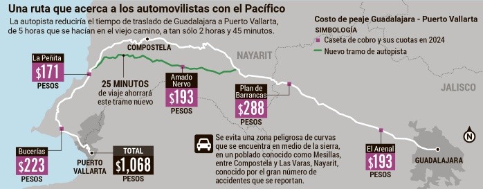 La inauguración de la vía corta Guadalajara-Puerto Vallarta potencializará el turismo regional aseguraron autoridades estatales y municipales.El pasado 27 de marzo inició operaciones el nuevo tramo de la vía corta Guadalajara-Puerto Vallarta, con lo que se pondrá fin al tramo de curvas que va de Compostela a Las Varas, Nayarit; para unir los dos tramos que ya funcionan: Jala-Compostela y El Capomo-La Florida.Este nuevo tramo, que evita pasar por la zona peligrosa de curvas por la carretera libre a la altura del poblado de Mesillas, fue abierto sin gran publicidad, debido a la veda electoral. En días anteriores ya se había mencionado que se esperaba que este nuevo camino se pusiera en operación para facilitar a los pasajeros el trayecto a Puerto Vallarta, justo durante las vacaciones de Semana Santa y Pascua.El tramo ya estaba terminado desde tiempo atrás, pero se esperaba la aprobación de Banobras y otras entidades públicas para disponer su viabilidad y ponerlo en funcionamiento.Según se dijo, no existe plaza de cobro en el tramo de Compostela-Las Varas. Las únicas casetas de cobro existentes de Jala a Nuevo Vallarta son: Amado Nervo, Tonino y Bucerías, de Guadalajara a Nuevo Vallarta; las estaciones de cobro son: El Arenal, Plan de Barrancas, Amado Nervo, Tonino y Bucerías.La vía corta a Puerto Vallarta aún tiene un tramo más por terminar. Actualmente, está en construcción un camino más, de 32.2 kilómetros, que reducirá en 25 minutos el tiempo de traslado, mismo que conectará el Entronque San Vicente en forma directa con el Aeropuerto Internacional de Puerto Vallarta. Se dice que estaría listo para agosto. El alcalde con licencia de Puerto Vallarta, Luis Alberto Michel, también conocido como “Profe” Michel, pidió recientemente a las autoridades federales tomar en cuenta obras prioritarias faltantes en el municipio, pues de nada sirve que se cuente ya con una autopista que reduzca tiempos si todos los vehículos saldrán en el crucero de Mezcales que es la única vía para ingresar a Vallarta.Entre los proyectos que ha mencionado de urgente necesidad son el Puente Federación, el crucero de Las Juntas y el Libramiento que permitirá un mejor acceso y el desahogo vehicular.Al participar en el Tercer Foro Regional para la Construcción Conjunta de la Estrategia Nacional de Movilidad y Seguridad Vial 2023-2040, realizado bajo la convocatoria de la Secretaría de Desarrollo Agrario, Territorial y Urbano (Sedatu) y los gobiernos de Jalisco y Nayarit, hizo un llamado a las autoridades presentes para que dentro de las decisiones y conclusiones de este encuentro, se tomen las medidas que resultan ya apremiantes, para que la zona conurbada de Puerto Vallarta y Bahía de Banderas cuente con una mejor movilidad.Señaló como una muestra de la urgencia de que se tomen acciones en la materia que en el 2022 a Puerto Vallarta llegaron 184 cruceros cuyos pasajeros utilizan algún tipo de transporte, también arribaron entre 180 y 184 vuelos diarios con un gran número de pasajeros que también requieren moverse por el destino, al igual que quienes llegan por vía carretera y que el año pasado sumaron 150 autobuses diarios, más alrededor de 50 autobuses rentados, lo que viene a congestionar las vías de transporte.La candidata de la “Coalición Sigamos Haciendo Historia”, Claudia Delgadillo, resaltó que gracias al Gobierno federal se haya consolidado la operación de la vía corta Guadalajara-Puerto Vallarta. La candidata al Gobierno del Estado aseguró que se potenciará el turismo en uno de los destinos más importantes de México, y que a Jalisco le traerá beneficios directos.“Este logro es gracias al apoyo del Gobierno Federal que materializó esta obra, y este tipo de proyectos serán más ágiles, y esto se logrará gracias a la coordinación que tendremos con Claudia Sheinbaum, quien apunta a ser la primera Presidenta de México”, dijo.Señaló que tiene propuestas concretas para impulsar el turismo en Puerto Vallarta. Su enfoque se basa en estrategias prácticas y necesarias como la mejora de la infraestructura pública.El Gobierno del Estado destacó la inauguración del nuevo tramo carretero de la vía corta Guadalajara-Puerto Vallarta. “Después de muchos años de espera la SICT abrió la autopista Guadalajara-Puerto Vallarta, una obra muy esperada por turistas de Jalisco y de todo el país, de una enorme complejidad técnica y que reducirá los tiempos de traslado entre la ciudad y este importante destino de talla mundial”, dijo el gobernador.Si bien es una buena noticia la conclusión en unos meses más de la nueva autopista Guadalajara-Puerto Vallarta, así como la construcción de la segunda terminal aérea del Aeropuerto Internacional de esta ciudad, hay retos que deben resolverse de inmediato para recibir a los miles de visitantes y tienen que ver con la infraestructura de este municipio y la falta de crecimiento de la hotelería, opinó recientemente Francisco Gabriel Vizcaíno Rendón, presidente de la Confederación Patronal de la República Mexicana (Coparmex) de Puerto Vallarta.En entrevista para medios locales, Francisco Gabriel Vizcaíno comentó que han esperado por mucho tiempo la conclusión de la vía corta Guadalajara-Puerto Vallarta, por lo que son excelentes noticias de que ya vaya a concluir, para que así más turismo llegue a la ciudad y en menor tiempo. Pero esto también trae algunos retos, por ejemplo, el hospedaje.“Lamentablemente, no ha crecido la hotelería en Puerto Vallarta, sí los condominios y plataformas de hospedaje, por lo que ellos también deben hacer su esfuerzo, de incluirse, de servir bien al cliente e incluso en los códigos de conducta; así como plataformas importantes que ofrece el Gobierno estatal como es el Distintivo H, Moderniza y Punto Limpio, que son atractivos para atraer más turistas”, dijo el dirigente empresarial.Destacó que el principal reto es la infraestructura dentro de Puerto Vall