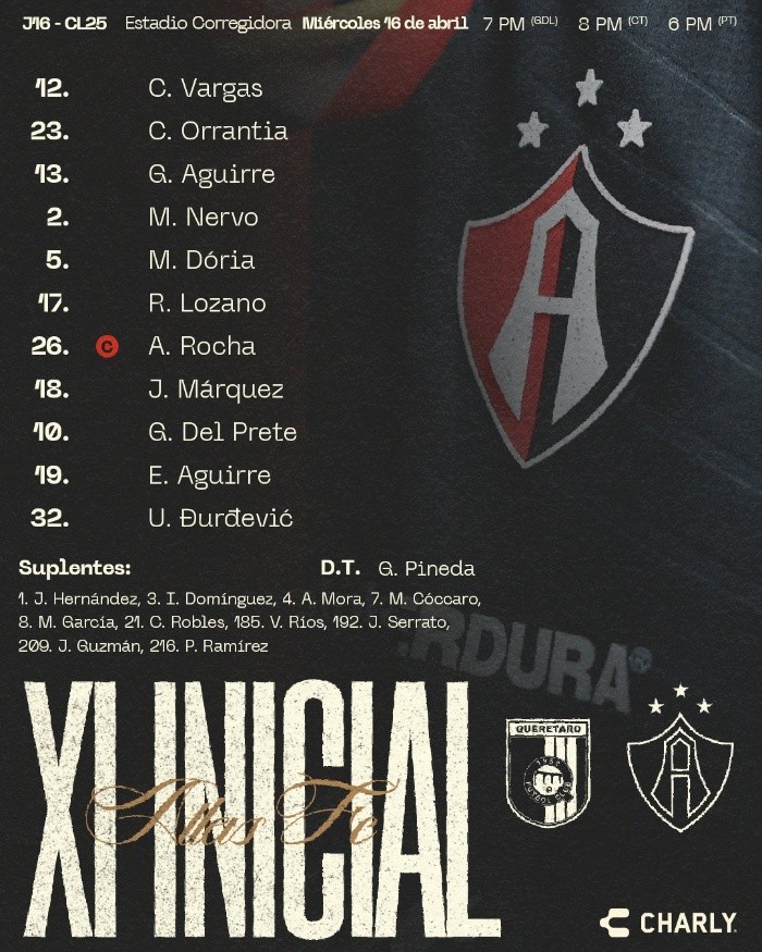 Deportes | Querétaro vs Atlas • Momentos Destacados • Jornada 16 • Clausura 2025 Atlas y Querétaro se enfrentarán en el Estadio Corregidora, ambos manteniendo la esperanza por encontrar un lugar en el Play-In Sergio Alejandro Velázquez 16 de abril de 2025 - 18:15 hs QUERÉTARO1 ‒ 2ATLAS Fin del partido 90+2' ¡Gooooooooooooooool del Atlas! Uros Durdevic le regresa la ventaja al Atlas al convertir el penal. Djurfdjevic firmó la victoria del @AtlasFC. Descarga la app: https://t.co/8BX8Ovt5tL pic.twitter.com/3wMX5zAjzw — Caliente TV (@somoscalientetv) April 17, 2025 90' Agregan 5 minutos al segundo tiempo 90' ¡Penal en favor del Atlas! Jaime Gómez comete falta sobre Eduardo Aguirre dentro del área, lo que le vale una tarjeta amarilla y la pena máxima para Querétaro. 83' ¡Querétaro empata el partido! Adonis Preciado remata de zurda desde la zona izquierda del área tras recibir un pase de cabeza de Kevin Escamilla durante un saque de esquina y empata el partido. ¡GOOOOOOOOOOOOOOOOOOOL DE LOS GALLOS!������ Adonis Preciado descontó y empató el marcado. ���� Descarga la app: https://t.co/8BX8Ovt5tL pic.twitter.com/Yo46QzQKOD — Caliente TV (@somoscalientetv) April 17, 2025 81' Otro cambio de los Gallos Sale Rodrigo Bogarín, entra Antonio de María y Campos. 80' Amarilla para ambos equipos Los dos equipos recibe amonestación; Kevin Escamilla para Querétaro y Eduardo Aguirre para Atlas. 77' Atlas con más cambios Salen: Rivaldo Lozano y Jeremy Márquez. Entran: Adrián Mora y Carlos Robles. 68' Cambios en ambos equipos En Atlas salieron Gustavo del Prete y Aldo Rocha para dejar entrar a Mateo García y Paulo Ramírez. En Querétaro salen Aldahir Pérez y Jonathan Perlaza, entraron Alan Medina y Sebastián Hernández. 66' Querétaro retoma la búsqueda por el empate Los ajustes en el equipo local comienzan a dar resultado. Con mayor intensidad en la ofensiva y mejor circulación del balón, la presión sobre el arco de Camilo Vargas se intensifica; el área rojinegra vive momentos de alta tensión con llegadas constantes durante los últimos minutos. 62' Cambios en Querétaro Salen: Pablo Barrera y Lucas Rodríguez. Entran: Ronaldo Cisneros y Fernando González. 57' Atlas vuelve a generar presión Gustavo del Prete se queda cerca de conseguir el segundo de los rojinegros durante un tiro libre que terminó impactando el travesaño. Pese a que el inicio del segundo tiempo trajo consigo una disminución de la intensidad, los visitantes ya regresan a presionar dentro del área rival. 56' Amarilla también para Querétaro Óscar Manzanarez recibe la segunda amonestación para los Gallos Blancos. 49' Amarilla para Atlas Matheus Dória vio la tarjeta amarilla tras frenar a su rival con un evidente jalón de camiseta. Comienza el segundo tiempo Atlas regresó con un cambio, salió Gaddi Aguirre para dejar entrar a Víctor Ríos. Se termina la primera mitad 45' Agregan 3 minutos al primer tiempo 42' Los rojinegros buscan el segundo Jeremy Márquez intentó conseguir el segundo para el Atlas con un remate a larga distancia, sin embargo, el balón terminó saliendo del terreno de juego. 37' ¡Atlas abre el marcador! Carlos Orrantia remató con la derecha desde fuera del área con una gran definición para brindarle la ventaja a los rojinegros. ¡QUÉ GOLAZO DEL CHARAL ORRANTIA! ����@charalorrantia abrió el marcador con esta joya de gol. ���� Descarga la app: https://t.co/8BX8Ovt5tL pic.twitter.com/xijZtbJxAX — Caliente TV (@somoscalientetv) April 17, 2025 29' Partido detenido por lesión Aldo Rocha fue derribado a mitad de cancha, lo que provocó que el partido se detuviera por unos minutos, sin embargo, el jugador del Atlas logró reincorporarse. 22' Querétaro recibe amonestación Adonis Preciado se lleva la primera amarilla para el conjunto local. 19' Las acciones se concentran en el mediocampo Atlas ha resistido algunos ataques del Querétaro, pero la mayor parte de las acciones se ha desarrollado a mitad de cancha, con un cambio constante de la posesión que no ha permitido a ninguno de los dos bandos extender sus jugadas. 10' Los Gallos mantienen presión El equipo local ha intentado en diversas ocasiones y aún consigue el balón para generar sensaciones de peligro que el Atlas ha logrado obstaculizar para mantener el marcador sin cambios. Los rojinegros también consiguen breves posesiones, pero no han logrado ir más allá del mediocampo. 5' Primera amarilla para el Atlas Gaddi Aguirre recibió la primera amonestación para el conjunto rojinegro. 1' Querétaro con la primera del partido Camilo Vargas apareció desde el arranque del encuentro al rechazar un remate de Aldahir Pérez, brindándole un tiro de esquina al Querétaro. Seguido a esto, Kevin Escamilla encontró la oportunidad para un nuevo disparo, pero el balón terminó saliendo del campo por arriba de la portería. Comienza el partido Las acciones dan inicio en el Estadio Corregidora con la posesión del Atlas. Previa del partido La Jornada 16 del torneo Clausura 2025 con un atractivo duelo en el Estadio Corregidora, donde Querétaro se enfrenta a Atlas en busca de tres puntos clave. Los Gallos Blancos cuentan con posibilidades de clasificar al Play-In, mientras que los Zorros, pese a su complicada situación, también mantienen la esperanza. Atlas, dirigido por Gonzalo Pineda, llega tras una polémica derrota 2-3 ante Toluca, acumulando su cuarto partido sin victoria y ubicándose en el puesto 15 con 14 puntos. Por su parte, Querétaro, bajo el mando de Benjamín Mora, venció 1-2 a Santos y suma 17 unidades, igualando con Mazatlán y acercándose a zona de clasificación. El historial reciente favorece a los queretanos, quienes han ganado los últimos dos encuentros frente a Atlas y podrían lograr su tercera victoria consecutiva ante los Zorros, algo que no logran desde la temporada 2009-2010. Además, Querétaro suma tres triunfos seguidos como local. ¿Cuándo y dón
