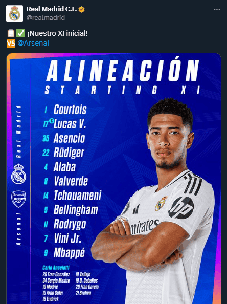 Deportes | Real Madrid vs Arsenal EN VIVO: sigue online las jugadas destacadas de la Champions League Entérate de los goles del partido de este miércoles en Madrid Oralia López 16 de abril de 2025 - 15:02 hs 1 ‒ 2 ¡Eliminado! Real Madrid pierde con global de 5-1 y queda fuera de la Champions League. ¡Gooool! Martinelli le regresa la ventaja al Arsenal en el añadido, al 90+3. ¡Gooool! Vinicius anota al 67; se empata el partido. ¡Goooool! Bukayo Saka anota al 65' y abre el marcador en favor del Arsenal. ¡Arranca el segundo tiempo! Comienza el complemento en el Santiago Bernabéu. Medio tiempo en Madrid Terminan los primeros 45 minutos. Los merengues buscarán el milagro en la segunda parte. Penal anulado El VAR revisa la decisión del árbitro y echa atrás un penalti a favor del Real Madrid. ¡Penal para Arsenal! Saka cobra al minuto 13, pero Thibaut Courtois lo detiene. El marcador sigue sin moverse. ¡Arranca el partido! Rueda el balón en el Estadio Santiago Bernabéu, el equipo local saldrá con todo para remontar el marcador. Listas, las alineaciones para el partido Temas Real Madrid Arsenal Futbol Internacional Champions League UEFA Lee También ¿Qué marcador necesita Real Madrid para avanzar a semifinales de la Champions League? México califica de "dudoso" el triunfo de Daniel Noboa en Ecuador Real Madrid vs. Arsenal: Dónde ver EN VIVO los cuartos de final de la Champions League Inter de Milán vs. Bayern Múnich: Dónde ver EN VIVO los cuartos de final de la Champions League