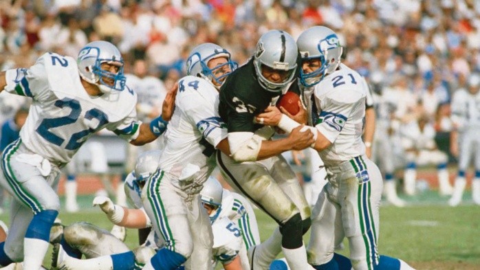 Tal y como ocurrió con la franquicia de los Buccaneers y como parte de los planes de expansión de la Liga tras la fusión de 1970, surgieron intenciones de llevar un equipo de NFL a Seattle.Todo comenzó en 1972 cuando surgió Seattle Professional Football Inc., un grupo de empresarios y líderes de la ciudad que presentó sus intenciones de atraer una de las nuevas franquicias de la Liga, lo cual se cristalizó un par de años después, en junio de 1974.Pocos meses después, el 5 de diciembre, el entonces comisionado de la Liga, Pete Rozelle, firmó la orden de que la franquicia se le otorgaría a la familia Nordstrom, liderada por Lloyd W. Nordstrom como socios mayoritarios, por lo que comenzaron los trabajos para debutar en la NFL en la temporada de 1976.Dentro de esas labores estaba la de elegir un nombre para el equipo, lo cual se haría a través de un concurso en el que se invitaba a la ciudadanía a sugerir el mote para la franquicia. Seahawks fue elegido en 1975 entre más de mil 700 opciones.Sin embargo, el camino al debut no fue tan sencillo, pues el primer dueño de la franquicia falleció pocos meses antes de iniciar con la aventura en los emparrillados, en la que se cuentan dos cambios de Conferencia (1977 y 2002), pero que ha sido premiada con un título y ser ahora una de las franquicias más identificables de toda la NFL.Steve LargentEl emblema es el perfil derecho de un halcón marino. La primera versión del logo está basada en la imagen de una máscara de transformación de la tribu Kwakwaka’wakwm, indios de la región del Pacífico del Noroeste, sin embargo, con el reordenamiento de las Divisiones de la Liga, la imagen del equipo cambia y en 2002 el logo conserva su esencia, aunque se le da un aspecto más agresivo al rostro del ave y cambiando los colores a dos tonos de azul. En 2012, se presenta la imagen actual con plateado en lugar de azul claro.NUMERALIA1 Super Bowl8 Títulos divisionales en la Conferencia Nacional2 Títulos divisionales en la Conferencia AmericanaSeattle comienza su aventura en la NFL con cinco derrotas en sus primeros cinco encuentros, sin embargo, la racha termina cuando vencen a los Buccaneers en Tampa por marcador de 13-10, en el primer encuentro entre ambas franquicias de expansión en su campaña de debut.Los Seahawks sólo tienen dos temporadas con récord ganador en sus primeros 7 años en la Liga, pero en su octava campaña, luego de terminar con marca de 9-7, logran meterse a los Playoffs como comodines, ganando su primer duelo de Postemporada 31-7 ante los Broncos de Denver. Seattle ganaría el siguiente duelo ante Miami, pero perdería el Campeonato de Conferencia ante los Raiders.Luego de sufrir las lesiones de hombres clave, Seattle gana tres de los últimos cuatro juegos de la temporada para terminar con marca de 9-7 y llevarse su primer título divisional como parte del Oeste de la AFC. En el último duelo derrotan 43-37 a los Raiders de Los Ángeles.Hundidos en la mediocridad y luego de que Ken Behring (segundo dueño) amenazara con mover el equipo a California por no tener un nuevo estadio en Seattle, aparece la figura de Paul Allen, cofundador de Microsoft, quien bajo la condición de trabajar por la construcción de un nuevo estadio y una oferta de 200 millones de dólares, adquiere el equipo y lo mantiene en Seattle.Ya como parte de la Conferencia Nacional por el reordenamiento en 2002 y tras su segundo título divisional consecutivo, conseguido por la mejor marca en la historia de la franquicia de 13-3 y tras vencer a Washington y Carolina en los Playoffs, los Seahawks llegan al primer Super Bowl de su historia, la edición XL, en la que caen 21-10 ante los Steelers de Pittsburgh.Los Seahawks vuelven a lo más alto del Oeste de la NFC al convertirse en el primer campeón divisional de la historia con marca perdedora (7-9). En la ronda de Comodines reciben a los campeones defensores Saints, a quienes derrotan 41-36 en el llamado juego del “Beast Quake”, un acarreo de 67 yardas de Marshawn Lynch que terminó en anotación y que provocó un microsismo en la ciudad, debido a las reacciones de los aficionados.Tras terminar la campaña regular con marca de 13-3 y vencer en Playoffs a Saints y 49ers, los Seahawks regresan a un Super Bowl.De la mano de su defensiva (conocida como la Legión del Boom), Seattle domina a la que fuera la mejor ofensiva de la Liga, la de los Broncos de Denver, forzando un safety en la primera jugada del encuentro y terminando con marcador de 43-8 a favor de los Seahawks, en el que también fue el primer Super Bowl en la historia que se juega en una ciudad de clima frío, pero en estadio abierto.