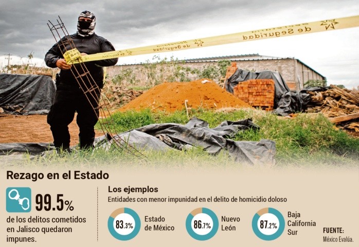 La resolución de casos de homicidios dolosos empeoró en Jalisco, al registrar una impunidad directa del 100% en 2022, de acuerdo con México Evalúa, cuando en 2021 el porcentaje fue del 99.7 por ciento. Según la organización, que hace cálculos a partir de los Censos de Procuración e Impartición de Justicia Estatales y solicitudes de acceso a la información pública, la impunidad directa se mide como la falta de atención, investigación o resolución de los eventos que fueron conocidos por la autoridad, ya sea al no “haberse logrado un acuerdo reparatorio, no derivarse a alguna salida anticipada, o bien, encontrarse sin sentencia”. Luis Campos, profesor en la Facultad de Derecho de la Universidad Panamericana, dijo que es necesario detectar los motivos por los cuales no se da respuesta a los casos.Jorge Luis González Monteón, académico de la UdeG, subrayó que hace falta más personal. “Hay una simulación en la forma en que investigan, procesan y sancionan”. México Evalúa explicó que algunos Estados lograron menor impunidad en homicidio doloso porque canalizaron los asuntos a través del procedimiento abreviado.Jorge Luis González Monteón, profesor de la Universidad de Guadalajara, señala que una de las problemáticas más graves que impiden el acceso a la justicia está relacionada con los grupos criminales. “La delincuencia organizada está infiltrada en las corporaciones policiacas, incrementa la impunidad. El Gobierno federal es el encargado, responsable de atacar a la delincuencia organizada, y cada día es mayor el avance que tiene la criminalidad en todo el territorio. Eso es lo que estamos observando, impunidad por simulación en la investigación. Simulaciones en el procesamiento, y los reclusorios están atiborrados”.Indica que, por ejemplo, acaba de conocer un caso en el que tardaron seis años en dictar una sentencia a cuatro personas y a tres las absolvieron. “Seis años privadas de la libertad en prisión preventiva, a tres les dicen que no son responsables. ¿Cómo queda la justicia que después de seis años les digan que quedan libres porque no pudieron comprobar el delito? Eso refleja ineficacia en la investigación. Es realmente desesperante para mucha gente. La Constitución dice que en un año se les debe juzgar y no deben durar más de dos en prisión preventiva”.Remarca que el país está viviendo una crisis de seguridad pública, donde la sociedad no ha podido exigir al Gobierno la función que le corresponde. “¿Dónde están los responsables materiales e intelectuales del homicidio del exgobernador, ni a estas alturas investigan? ¿Qué le espera a Juan ciudadano? Es una tarea de todos. Y como ya vienen las campañas, nos van a volver a prometer lo mismo”.Por su parte, Luis Campos, abogado postulante y profesor de la Universidad Panamericana, comenta que hay cuestiones que a veces la autoridad no puede controlar, donde los casos quedan abiertos por falta de evidencia. “Y quedan como asuntos inconclusos. Se quedarán pausados mucho tiempo, hasta que los tiempos que la ley penal determina para que la facultad de investigar del Ministerio Público (MP) concluya. Es decir, las sanciones que pudieron haberse impuesto a alguien no se pudieron identificar, prescribe y no se le puede perseguir penalmente, y el caso se guarda y archiva”.Por ejemplo, añade, hay un caso donde atropellan a una persona y quizá hay un testigo que aporta datos de una placa, y resulta que investigan y el dato del vehículo estaba mal. “Entonces no puedes encontrar al responsable. Allí el MP abrió su investigación, mandan oficio a la Policía para acordonar el área del evento, tomar fotografías. Ya tienes todo eso agotado. Entonces de quién es responsabilidad, ¿del MP o que no había tantos testigos?”, indica.El derecho a la tutela judicial efectiva, establecido en el artículo 17 de la Constitución mexicana, garantiza el acceso a un recurso efectivo ante un tribunal competente e imparcial, con resoluciones prontas, en un máximo de cuatro meses para delitos con pena máxima de dos años, y un año para penas mayores, a menos que la defensa requiera un plazo mayor.Según el reporte Hallazgos 2022 de México Evalúa, la duración promedio de las causas penales mediante juicio oral en México fue de aproximadamente 484 días para hombres y 504 días para mujeres.Jalisco destaca como la Entidad con mayor demora a nivel nacional, con un promedio de 817 días para la conclusión de causas penales mediante juicio oral, superando el límite legal de dos años.La organización señala que Jalisco, junto con Puebla, Baja California Sur y Coahuila exhibe duraciones más largas, atribuibles, en parte, a la suspensión de audiencias por la contingencia sanitaria. Esto afectó principalmente a los procesos más extensos y a tribunales que demoraron en adoptar audiencias virtuales.En Jalisco, el 59.99% de las causas penales en el fuero común concluyó mediante suspensión condicional del proceso, el 23.34% por acuerdo reparatorio, el 10.74% por sentencia en procedimiento abreviado, el 2.67% por sustracción de la justicia, el 1.63% por criterio de oportunidad, el 0.99% por sentencia en juicio oral y en el 0.64% no se identificó el proceso.A nivel nacional, solo el 4.7% de los casos judicializados termina mediante juicio oral, pero esta forma es más común en delitos de alto impacto, como delincuencia organizada, secuestro, desaparición de personas, homicidio, feminicidio, tortura y trata de personas, según México Evalúa.GUÍA1. Inexistencia de una política de seguridad y justicia de Estado.México Evalúa propone el diseño de una política de mediano y largo plazo que contemple la prevención y reacción desde la vía civil, la reducción de la impunidad, la protección de derechos, la reinserción social y la construcción de paz como ejes prioritarios y aplicables en todos los niveles.2. Abandono del fortalecimiento de capacidades investigati