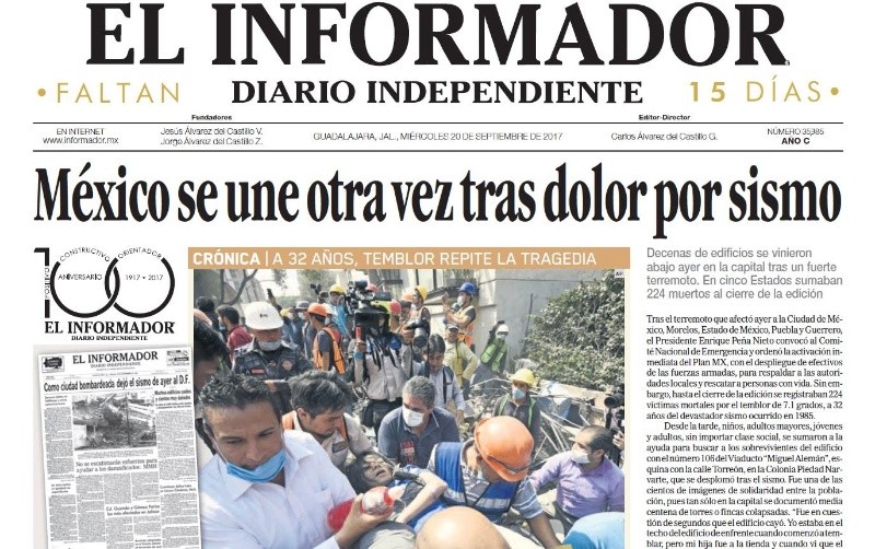 Un sismo de magnitud 7.7 sacudió ayer a Jalisco, en donde se reportaron daños menores como desprendimientos de cantera en los templos de La Merced y San Agustín, así como algunas grietas en el Museo Regional. Todos estos espacios se ubican en el Centro tapatío. El terremoto, que ocurrió minutos después de que se llevó a cabo el macrosimulacro 2022 en todo el territorio nacional, hizo que las personas salieran de sus domicilios, plazas y espacios de trabajo, entre otros puntos, y se pusieran a salvo. En el primer cuadro de Guadalajara este medio de comunicación observó gente en los alrededores de la plaza de la Liberación, plaza de Armas, plaza Universidad y el Congreso de Jalisco, principalmente. También se registraron daños en las bibliotecas San Martín de las Flores y San Pedrito, en Tlaquepaque, y en Chapala y Tamazula. Por este hecho, la Secretaría de Educación Jalisco (SEJ) y la Universidad de Guadalajara (UdeG) suspendieron clases. La casa de estudios indicó que sufrieron daños menores tres centros universitarios y 23 prepas. A 37 años del temblor de 1985 y a cinco del de 2017, el de ayer también se sintió en Michoacán (cuyo epicentro fue a 63 kilómetros al Sur de Coalcomán a las 13:05 horas), Colima, Estado de México y la Ciudad de México. Hasta anoche se había informado que dos personas perdieron la vida en Manzanillo: un hombre murió atrapado en los escombros de un gimnasio y una mujer falleció tras caerle una barda encima en una tienda departamental. Protección Civil federal también reportó que la intensidad del sismo, en menor medida, llegó hasta localidades de Nayarit, Guerrero, Aguascalientes, Querétaro, Guanajuato, Puebla, Tlaxcala y Morelos.El Instituto Mexicano del Seguro Social (IMSS) documentó daños menores en dos hospitales, mientras que el Instituto de Seguridad y Servicios Sociales para los Trabajadores del Estado (ISSSTE) en Apatzingán dio a conocer afectaciones en un inmueble. En Maruata fueron evacuados los pacientes del Hospital Integral de esa localidad, que tuvo daños estructurales.Cuando comenzó a temblar, Jesús López salió de su lugar de trabajo, en una casa de Zapopan, para avisar a sus compañeros que se movieran al jardín. Ya resguardados, vieron cómo el agua oscilaba y salía de una alberca. “Se sintió horrible. Les pedí a todos que estuviéramos afuera, que es la zona más segura de la casa. Me sentí bastante mareado. Afortunadamente estamos bien. Alrededor hay torres de departamentos y sí salieron bastantes personas asustadas”, compartió.Teresa Rocha, quien trabaja en un edificio cerca de La Normal, estaba en el cuarto piso cuando inició el sismo. Ella escuchó el crujido de los escritorios y observó el balanceo de las lámparas. “Bajar hasta el estacionamiento fue horrible. Hubo gente que le dio un ataque de pánico. Ahora nadie quiere volver”, dijo.Después del simulacro que se llevó a cabo ayer en el edificio Arroniz (ubicado frente a la Preparatoria 1 de la Universidad de Guadalajara), el administrador del inmueble, Salvador Rodríguez, tuvo que encargarse de evacuar a las personas que minutos antes habían participado en el ejercicio de prevención. “Afortunadamente tenía la sirena de alarma que recién usé para el simulacro. Mi escritorio se movió y les dije que estaba temblando. Me salí de la oficina al patio central y comenzaron a evacuar el edificio. Todo el simulacro se repitió. En el simulacro todos saben qué va a suceder, pero al momento del (terremoto) real el semblante de todos fue diferente. Vi a la gente bajar con miedo, aunque todos mantuvieron la calma”, destacó.El sismo registrado ayer en Jalisco provocó daños en dos templos de la zona Centro de Guadalajara, así como en planteles escolares de la metrópoli y del interior del Estado, afectaciones en casas en Tolimán y Zapotitlán de Vadillo, así como un hotel en Puerto Vallarta. En la Entidad no se reportaron personas lesionadas ni pérdida de vidas a causa del temblor. El Ayuntamiento tapatío informó que se documentaron dos incidentes: en el templo de Nuestra Señora de la Merced un ornato de cantera se desprendió del arco de ingreso, mientras que en el templo de San Agustín se fragmentó otro ornato de piedra que cayó sobre un vehículo. En ambos casos no se reportaron personas lesionadas. También se detectó una fuga de gas en el mercado Corona que fue atendida de inmediato y que no pasó a mayores.El jefe de la Unidad de Protección Civil Universitaria de la Universidad de Guadalajara (UdeG), José Luis Velázquez González, dio a conocer que hubo reportes de daños en la Preparatoria de Tlajomulco y de un edificio en Ciudad Guzmán. Previamente, el área de comunicación social de la UdeG comunicó que se reportaban daños menores en un muro del edificio L del Centro Universitario de la Costa Sur (CUCSur). No hubo personas lesionadas.Del monitoreo realizado a los 125 municipios, el Gobierno del Estado dijo que Tolimán y Zapotitlán de Vadillo son los municipios que presentaron mayores afectaciones, con el reporte de casas dañadas y bardas parcialmente caídas, sin daño a la integridad de las personas. “En el municipio de Tolimán, se reportan tres casas dañadas y afectaciones en parte de la estructura de la Escuela Secundaria Juan José Arreola”. También remarcó que ya se encontraban las Unidades de Protección Civil y Bomberos de la Región Sur en estos municipios, para el acompañamiento y revisión, y que estaba prevista la instalación de albergues y el apoyo con alimentos y productos de higiene personal para los afectados.La Coordinación Municipal de Protección Civil y Bomberos de Puerto Vallarta confirmó daños en algunos edificios, aunque sólo uno con afectaciones estructurales. Detallaron que hubo daños en plafones y grietas en enjarres del Hotel Sheraton Buganvilias, mientras que el Hotel Mío, en Los Tules, registró afectaciones en ventanales frontales. En el Hotel Hilton ta
