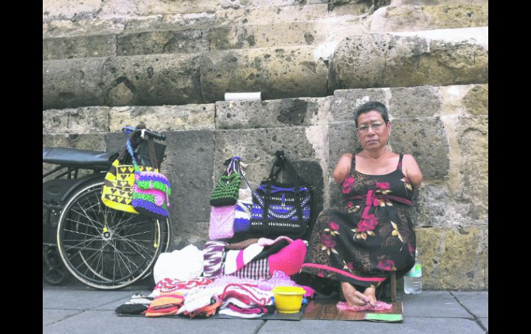 Suplementos | Al lado del Palacio de Gobierno, Trini comparte sus habilidades y pasión por la vida La bordadora sin manos A un costado del Palacio de Gobierno de Jalisco, en pleno centro, Trini comparte sus habilidades y pasión por la vida Por: EL INFORMADOR 21 de septiembre de 2014 - 00:53 hs 'Trini' como la conocen sus allegados nunca ha dejado de trabajara y ganarse su dinerito. EL INFORMADOR J. González / GUADALAJARA, JALISCO (21/SEP/2014).- Sus pies son sus manos. Con ellos pica la cebolla, el chile y guisa la papa y el tomate; toma el tenedor y se lleva el pedazo de comida a la boca. Con sus pies lava los platos y la ropa, pero la especialidad y modus vivendi de María Trinidad Murillo es bordar con éstos. Esta tabasqueña, originaria de la ciudad de Villahermosa, nació sin brazos hace 55 años y hasta la fecha no encuentra una respuesta a lo que le tocó vivir. Apenas tiene carne y hueso hasta donde termina la bastilla de una playera de manga corta, pero con esos centímetros de extremidad es suficiente para rascarse su rostro asoleado, limpiarse los restos del líquido de su boca cuando toma agua o acomodarse los lentes. El esposo y los conocidos de María Trinidad la llaman Trini. También los ambulantes que comparten con ella el espacio de trabajo en el Centro de Guadalajara, ciudad donde vive desde hace 13 años. Dice que eligió la capital jalisciense como su hogar porque le gustó este “pueblo”. Y desde entonces utiliza sus banquetas como aparadores de sus bordados. Carpetas, zapatitos, gorritos, morrales y blusas. Las piezas hechas con estambre van desde los 50 hasta los 300 pesos. Y para que los peatones y posibles compradores les conste que ella es la autora material de los bordados, Trini se sienta en un banquito de madera —similar al de los boleros— junto a Palacio de Gobierno de Jalisco y con los dedos de su pie derecho toma la aguja, del tamaño de un lápiz, y con el izquierdo toma el bordado; “afila” la mirada y “manos a la obra”, es hora de bordar. *** Trini no sabe escribir su nombre y apenas puede deletrear lo que lee. Dejó el estudio en la primaria a los 10 años, porque le enseñaron a bordar y tejer. Mercedes, su maestra, le ofreció a su compadre, el padre de Trinidad, darle clases. Esa señora me tuvo mucha paciencia, dice Trini. Cambió el lápiz por la aguja y los cuadernos por el estambre. También dejó la escuela por las burlas que sus compañeros le hacían. Pero Trini les daba unos “puñetazos” con sus pies para defenderse. Ahora cuando visita sus tierras y se ve con esos compañeros lo recuerdan como cosas de niños. Guadalajara también ha sido ingrata con ella. Algunas zonas como la de la Normal, cerca del DIF, sus banquetas no tienen rampa para su silla de ruedas. No se sube a los camiones, dice que los choferes son incomprensivos con las personas con discapacidad. Ya ha tenido discusiones con los que insultan a los que viven en estas condiciones. Ella no se deja, si puede se las regresa, aunque después acepta que se arrepiente de lo que les dice. La discriminación y regateo a los derechos de Trini no respeta ni fines de semana, ni días festivos, ni vacaciones. La Ley para la Inclusión de las Personas con Discapacidad no tiene “manos habilidosas” para defenderla. La última vez que Trini fue discriminada fue en agosto, cuando el personal de una de las líneas de autobuses en la central camionera del Norte de la Ciudad de México no le hicieron descuento en el pasaje. Ella les enseñó su credencial Nacional para Personas con Discapacidad que el DIF le dio. En el pedazo de plástico se lee que ella tiene una discapacidad músculo esquelética. Pero para el personal no fue razón suficiente para rebajarle 50% del boleto. Ese día Trini, una abuela que ve a sus nietos en contadas ocasiones, llevaba a Villahermosa a Carlos Alexis, su nieto. El niño estaba por comenzar otro año más de clases en el preescolar. Ella tenía que pagar el pasaje de su esposo, el nieto y el de ella, y costaba “muy caro”. *** A Trini le gusta verse maquillada, dice que así es más guapa; se pinta las uñas y se pone un anillo en uno de sus dedos del pie derecho. También tiene una fijación por los vestidos. Es vanidosa. No le gusta pisar el suelo con los pies descalzos, dice que “ella misma se daría asco” porque con éstos cocina y come. Por eso pone un plástico en la banqueta cuando se quita el calzado y borda. Ella platica que se trajo a su marido de Tabasco porque le ayuda con los quehaceres. Marco Antonio, su pareja, se encarga de hacer las compras, de algunas labores domésticas, de llevarla a trabajar y pasar por ella. Trini ha tenido problemas de salud últimamente. No puede comer comida callejera porque tiene colitis y ahora le diagnosticaron una enfermedad en los bronquios. Por eso no deja que su perro se suba a la cama. *** Si Trini hubiera podido terminar la primaria, secundaria, preparatoria y una carrera, dice que le gustaría haber sido licenciada de algo, ¿licenciada en qué? “pues quién sabe, cómo voy a saber si ni siquiera estudié”, rezonga. Y aunque no estudió más allá de las sumas y restas, nunca le gustó ser mantenida. Desde que aprendió a bordar y ganarse su dinerito se quiso dedicar a chambear toda su vida. Dice que así los hombres no podrían chantajear. ¿Cuánto gana? Lo suficiente para pagar la renta, para comer y comprar estambre e hilo. Pero con que alcance para lo primero se da por bien servida, mientras tenga un techo donde esté segura, Trini se siente tranquila. Por eso uno de sus sueños es comprar una casita y ya no pagar renta. Un techo seguro. Pero no sabe cómo hacerle. Ya está cansada de trabajar pero dejar de bordar es impensable. Si aprendiera a pintar, sería otro ingreso. Aunque no sabe leer, cuando borda en la banqueta, en el plástico color madera tiene una tarjeta enmicada con un lema escrito. Los peatones se acercan y la miran trabajar. Uno se para y no alcanza a ver 