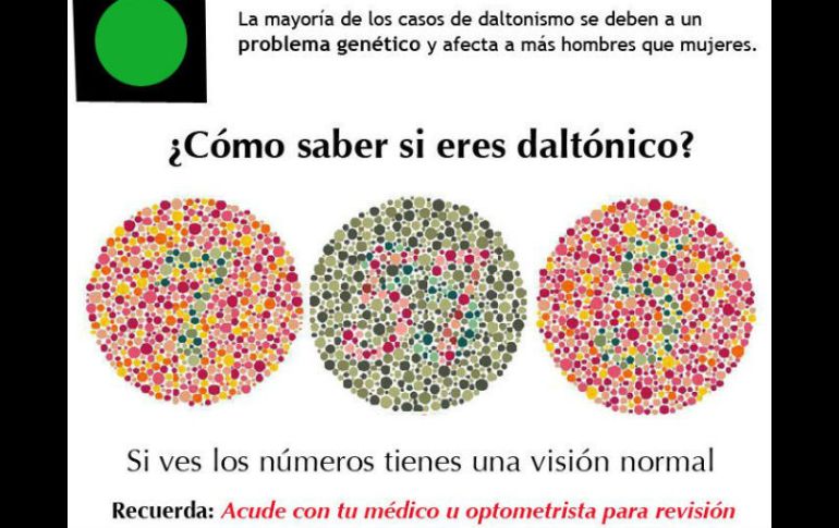 CIUDAD DE MÉXICO (30/DIC/2016).- El Instituto Mexicano del Seguro Social (IMSS) publica en su cuenta certificada de Twitter una pequeña prueba que puede ayudar a los usuarios a saber si tienen daltonismo, que es, de acuerdo con el mismo instituto, la incapacidad de las células de percibir el color.Explica que estas células se llaman conos y se encuentran en la retina. "La mayoría de los casos se deben a un problema genético y afectan más a hombres que a mujeres", explica el IMSS.Por ello, muestra en una imagen tres círculos de colores con números dentro. Si uno ve los números puede decirse que la vista es normal.Sin embargo, es necesario acudir al optometrista para una revisión completa.