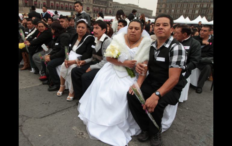 Suplementos | Unas mil 690 parejas se casan en la ceremonia encabezada por Miguel Ángel Mancera Realizan bodas colectivas en el Zócalo Unas mil 690 parejas se casan en una ceremonia encabezada por el jefe de Gobierno, Miguel Ángel Mancera Por: SUN 14 de febrero de 2015 - 12:27 hs Los contrayentes disfrutaron del tradicional brindis y de un pastel de siete pisos. NTX / J. Lira CIUDAD DE MÉXICO (14/FEB/2015).- Aproximadamente mil 690 parejas contrajeron matrimonio esta mañana en la boda colectiva que el Gobierno del Distrito Federal (GDF) organizó en la explanada del Zócalo. En una ceremonia encabezada por el jefe de Gobierno, Miguel Ángel Mancera, los contrayentes disfrutaron del tradicional brindis, un pastel de siete pisos decorado con motivos rosas, así como un espectáculo musical. La circulación resultó afectada por este evento, la Secretaría de Seguridad Pública del Distrito Federal (SSPDF) indicó que se estableció un corte a la circulación sobre 20 de Noviembre a la altura de República de Uruguay. Esta noche los Ángeles Azules serán los encargados, junto con una orquesta sinfónica, de hacer bailar a los enamorados que asistan a la Plancha de la Constitución en punto de las 19:00 horas. Temas Matrimonios Gobierno del Distrito Federal Calor de hogar Día del amor y la amistad Pareja Lee También Diputada propone Home Office por lluvias en la CDMX ¿Cómo afectan las faltas al trabajo en el pago del aguinaldo? ¿Por qué se pone un altar a los muertos en México? Un país donde la salud mental no existe en el presupuesto Recibe las últimas noticias en tu e-mail Todo lo que necesitas saber para comenzar tu día Registrarse implica aceptar los Términos y Condiciones
